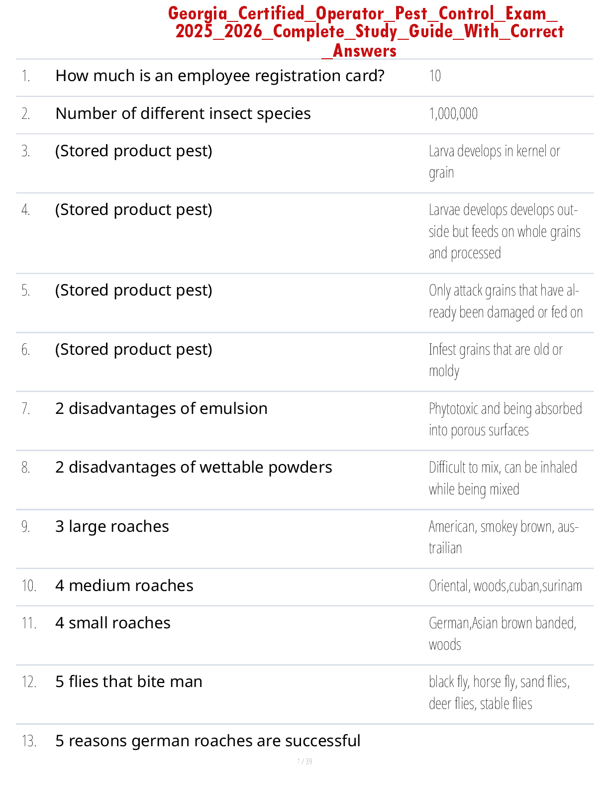 QAL "B" Landscape Maintenance and Pest Control, > EXAM REVIEW > Complete Exam Preparation Guide for the Louisiana Pest Control Technician Test (All)