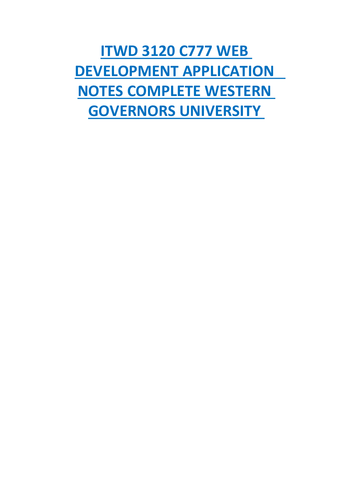 Webce > EXAM > ITWD 3120 C777 WEB DEVELOPMENT APPLICATION NOTES COMPLETE WESTERN GOVERNORS UNIVERSITY (All)