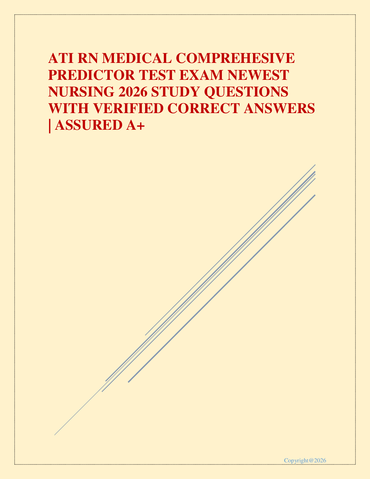 ATI COMPREHENSIVE PREDICTOR > EXAM > ATI RN MEDICAL COMPREHESIVE PREDICTOR TEST EXAM NEWEST NURSING 2026 STUDY QUESTIONS WITH VERIFIED CORRECT ANSWERS | ASSURED A+ (All)