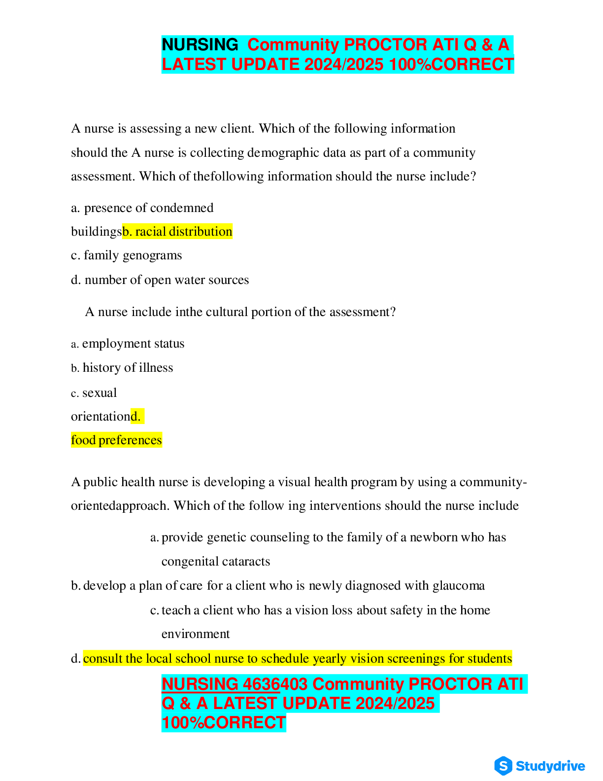 ATI COMPREHENSIVE PREDICTOR > EXAM PROCTORED > ATI Comprehensive Predictor- Updated-2025-2026 MIDTERM EXAM Questions with Correct Answers Rated A+ (All)