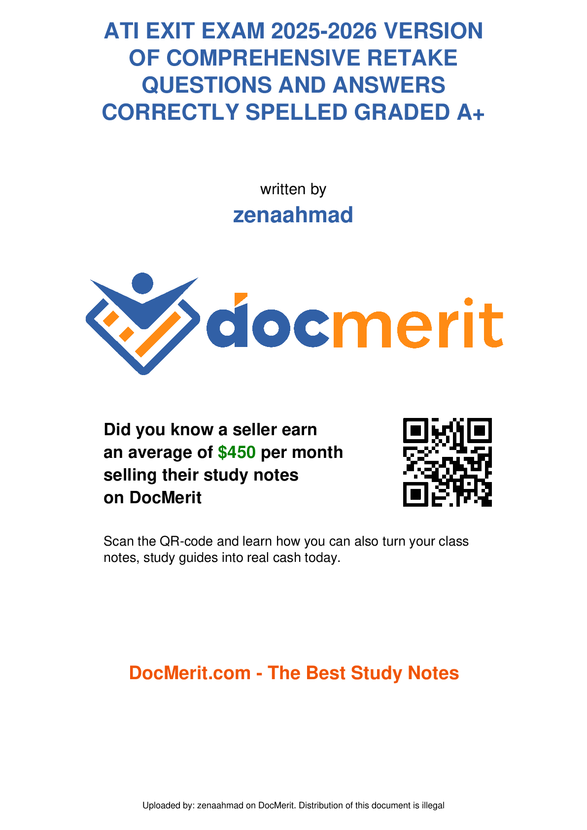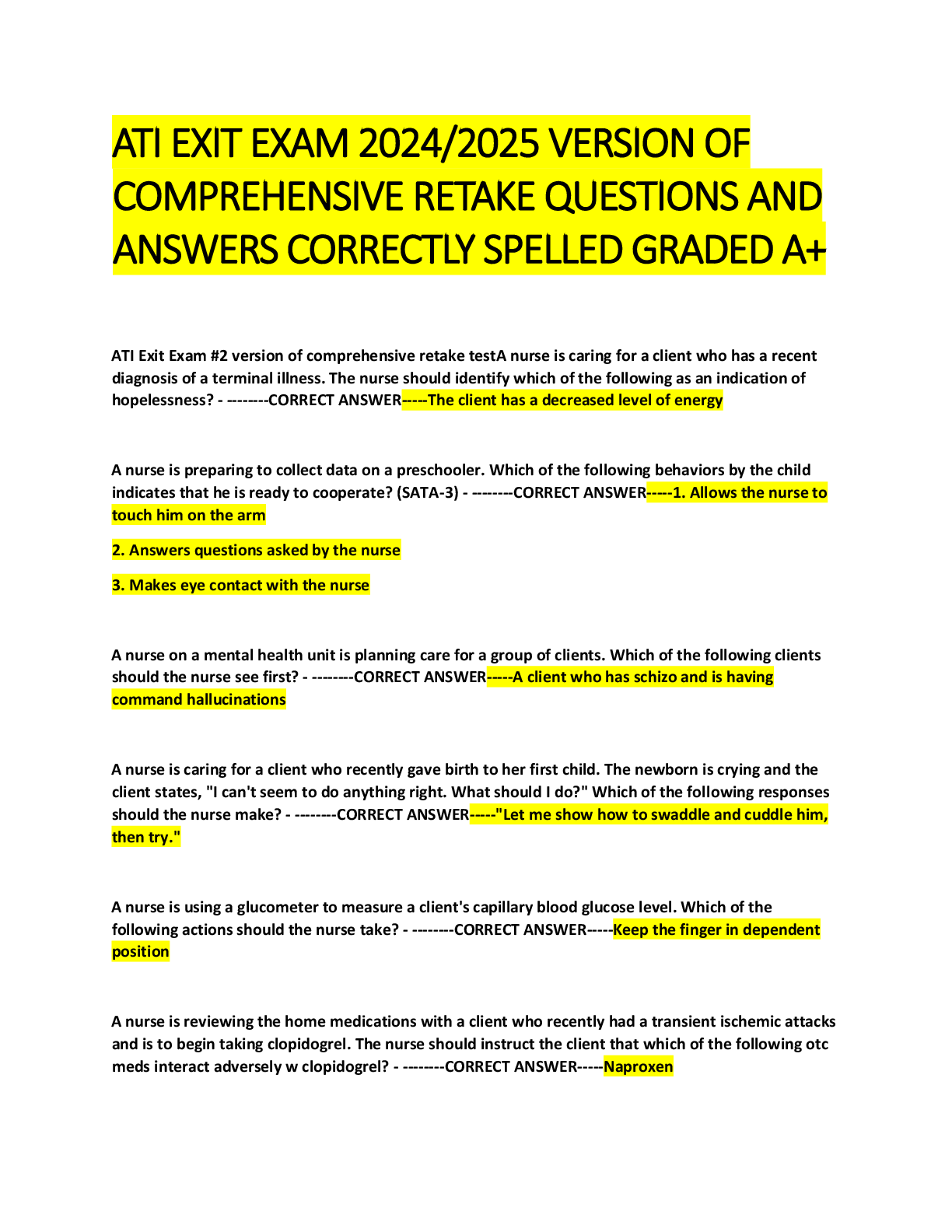 ATI COMPREHENSIVE PREDICTOR > EXAM > ATI EXIT EXAM 2025-2026 VERSION OF COMPREHENSIVE RETAKE QUESTIONS AND ANSWERS CORRECTLY SPELLED GRADED A+ (All)