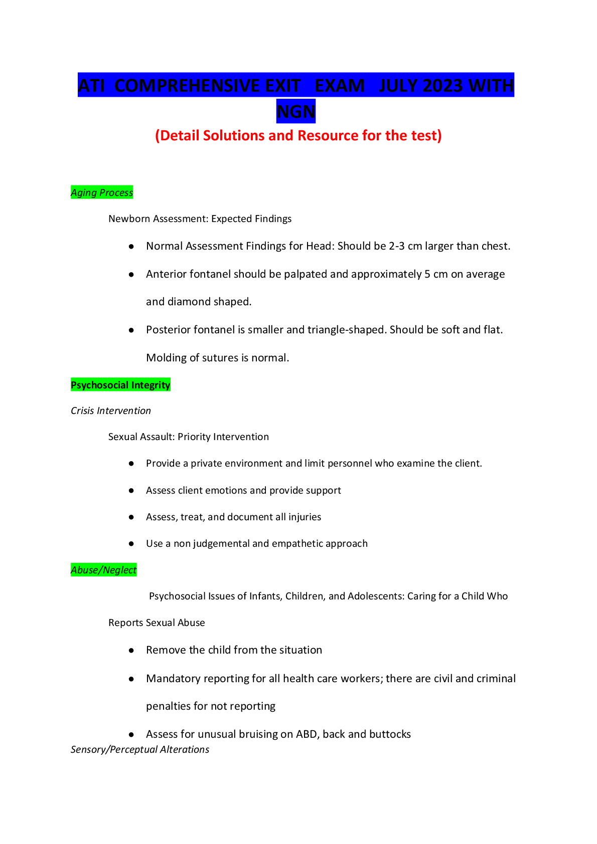 ATI COMPREHENSIVE PREDICTOR > EXAM > Ati comprehensive exit july 2025/2026 exam with ngn (All)