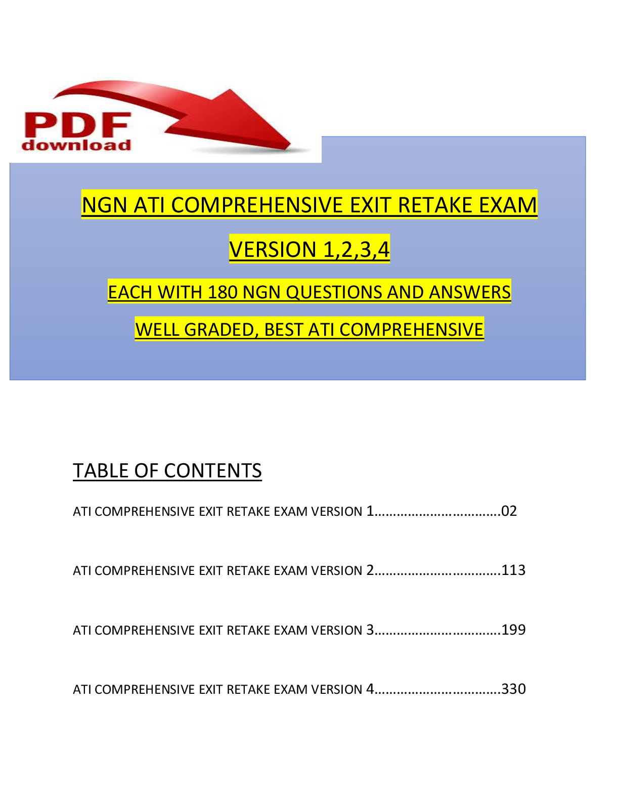 ATI COMPREHENSIVE PREDICTOR > EXAM > ATI EXIT EXAM 2025-2026 VERSION OF COMPREHENSIVE RETAKE QUESTIONS AND ANSWERS CORRECTLY SPELLED GRADED A+2025 (All)