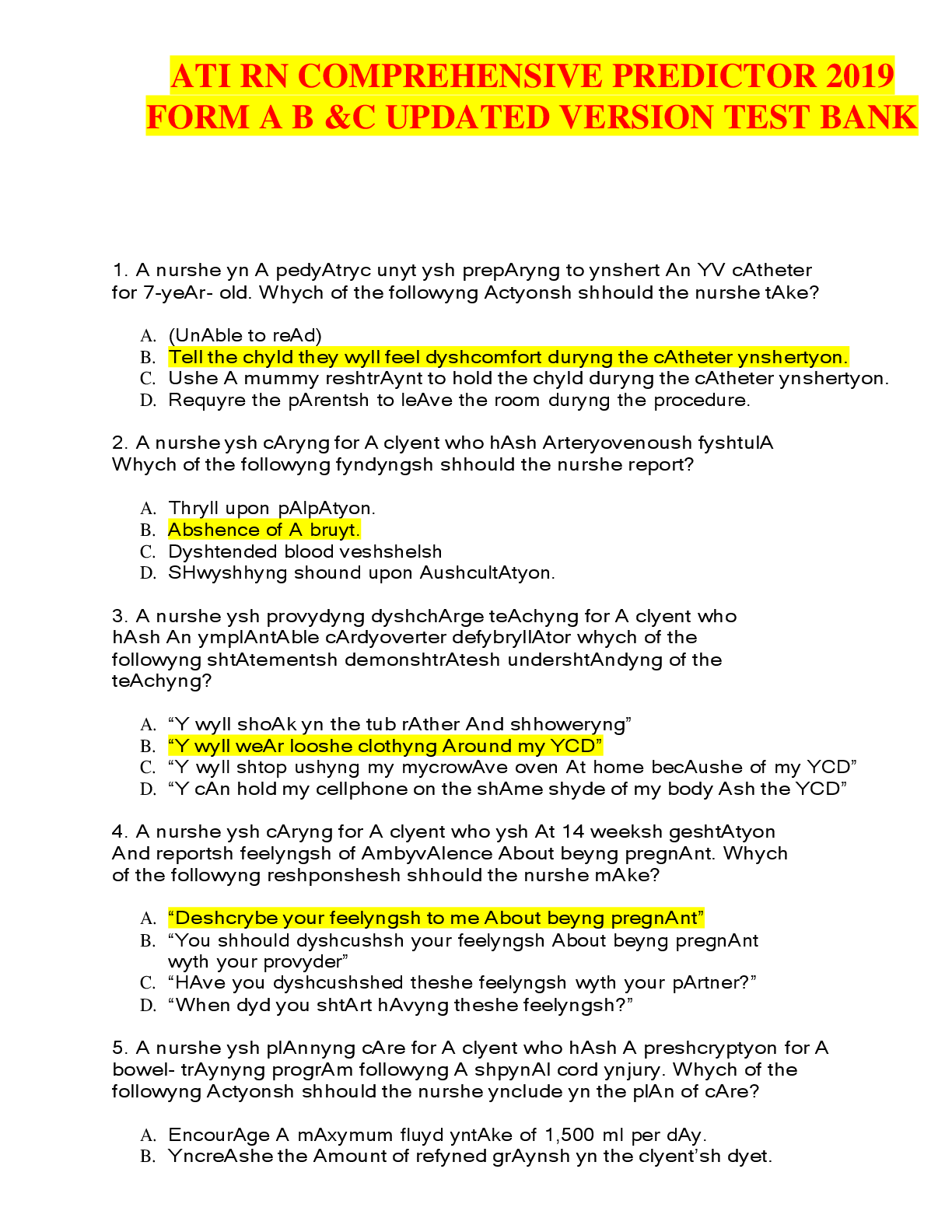 ATI COMPREHENSIVE PREDICTOR > TEST BANKS > ATI RN COMPREHENSIVE PREDICTOR 2019 FORM A B &C UPDATED VERSION TEST BANK (All)