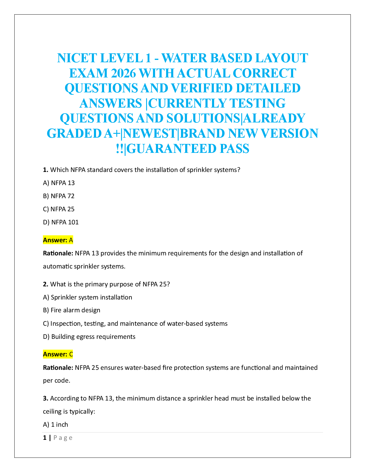 Fire Officer > EXAM > NICET LEVEL 1 - WATER BASED LAYOUT EXAM 2026 (All)