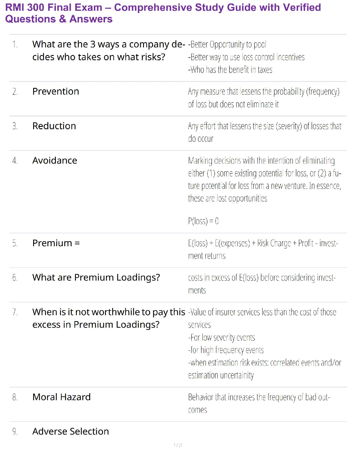 Risk Management and Insurance > EXAM > RMI 300 Final Exam – Comprehensive Study Guide with Verified Questions & Answers (All)