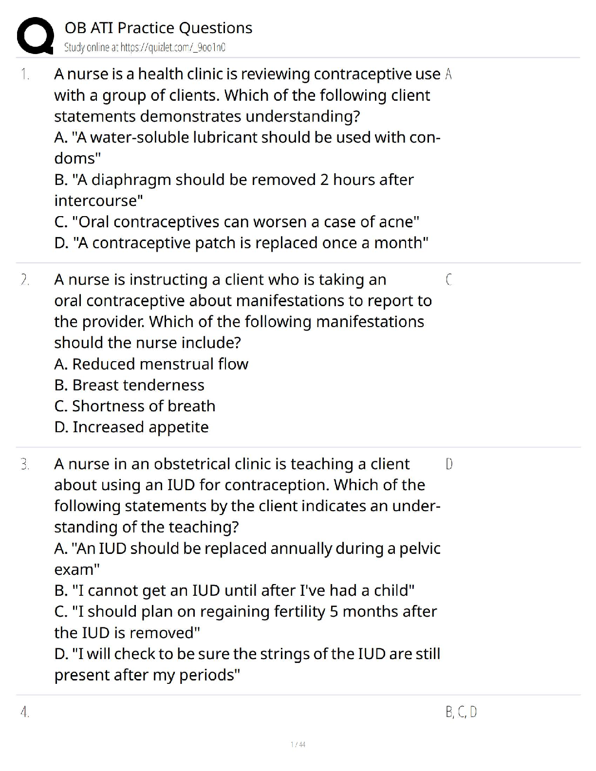 OB Maternity HESI > QUESTIONS & ANSWERS > OB ATI Practice Questions / Maternal Newborn Nursing / 2025 Updated Test Bank with Rationales – Score 100% (All)