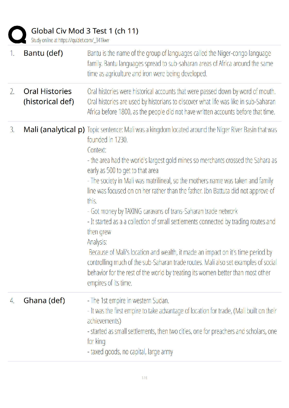 AMERICAN HISTORY > ASSIGNMENT > Global Civ Mod 3 Test 1 (Ch 11) / Score 100% / 2025 Update / Study Guide & Exam Prep (All)
