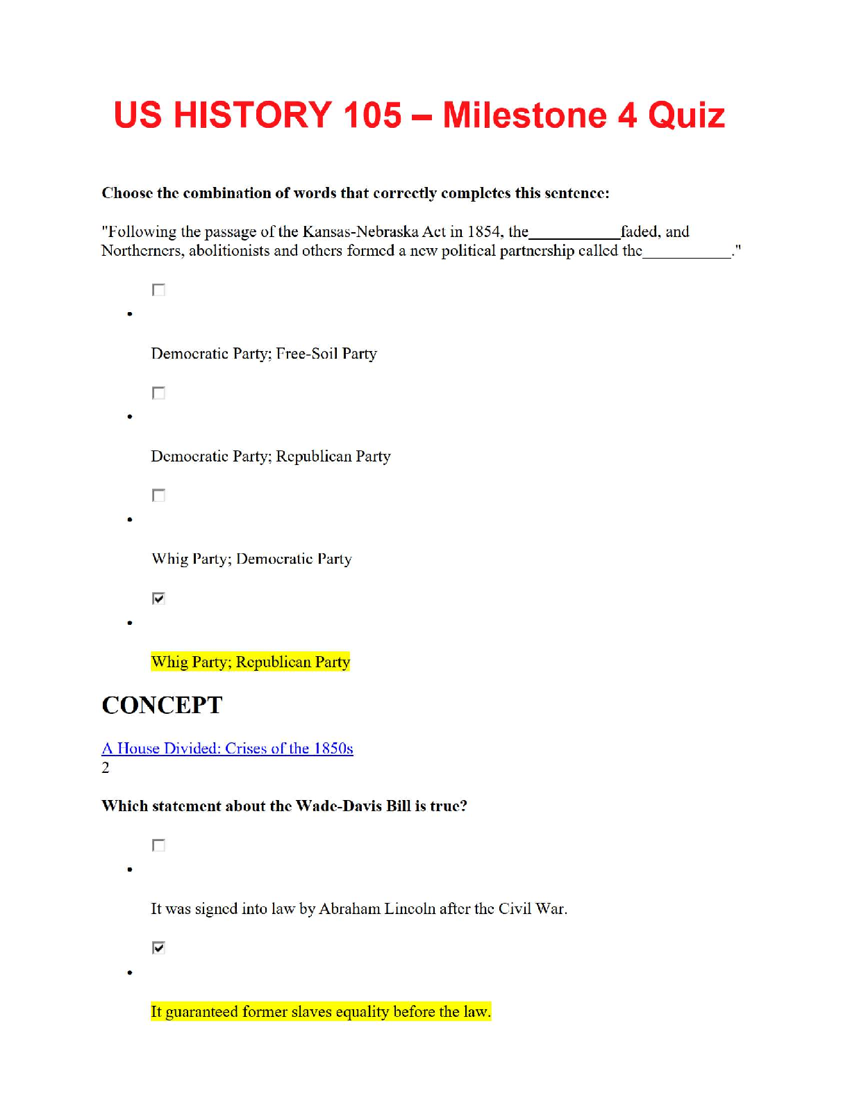 AMERICAN HISTORY > Quiz > 📜 US HISTORY 105 – Milestone 4 Quiz ✅ (All)