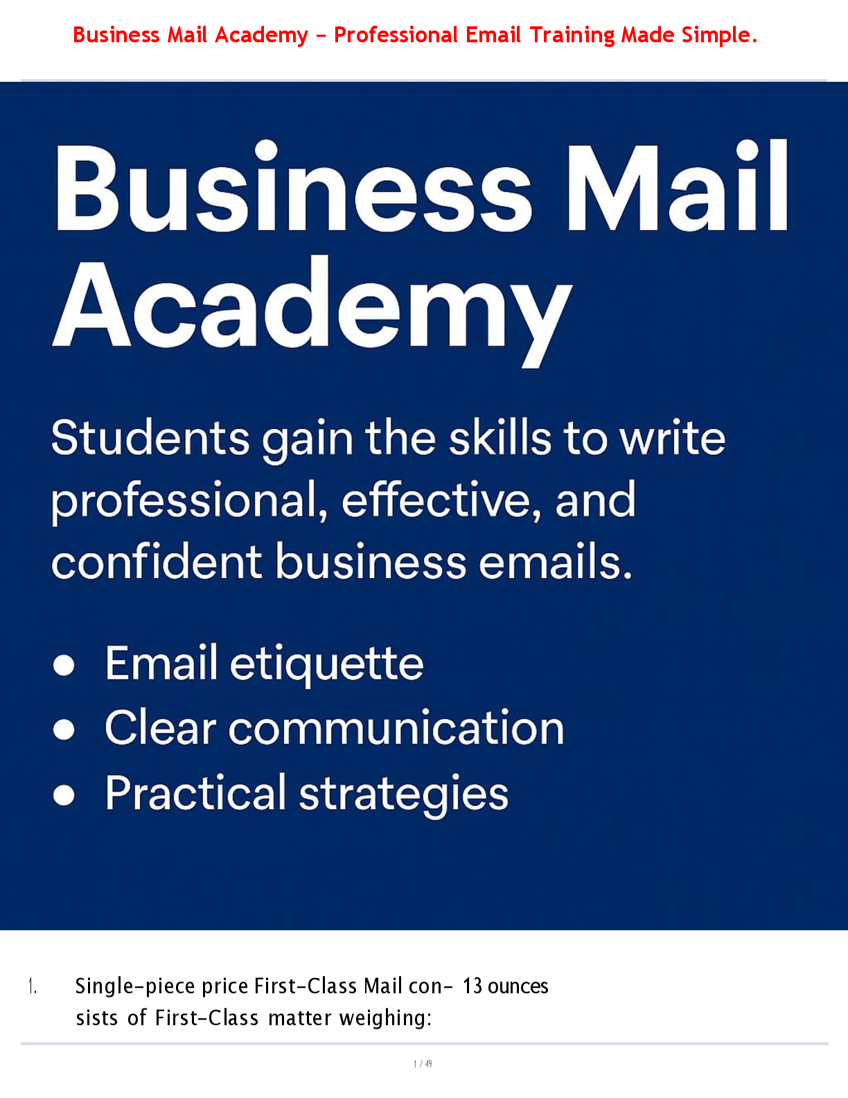 USPS > QUESTIONS & ANSWERS > Business Mail Academy – Professional Email Training Made Simple. (All)