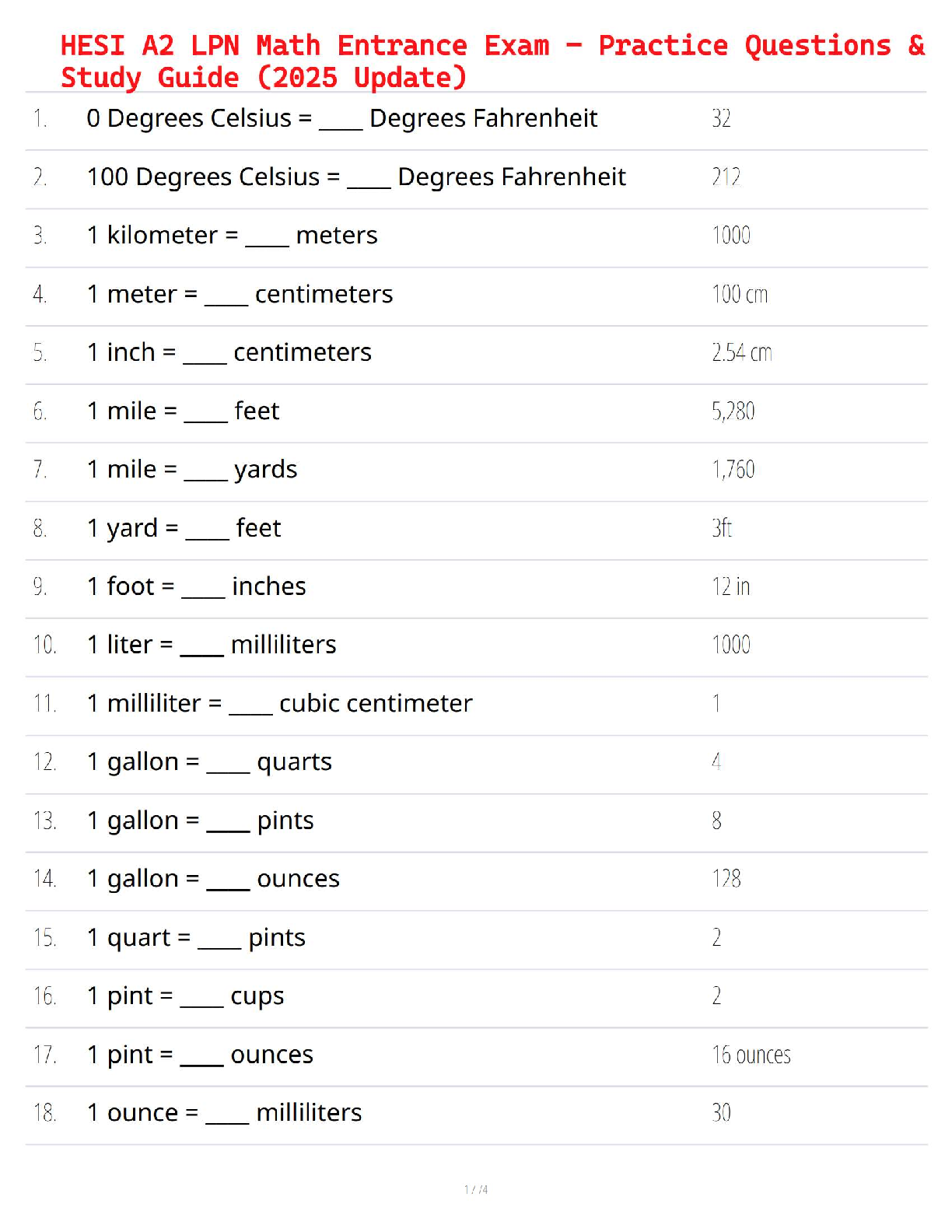HESI A2 ENTRANCE > QUESTIONS and ANSWERS > HESI A2 LPN Math Entrance Exam – Practice Questions & Study Guide (2025 Update) (All)