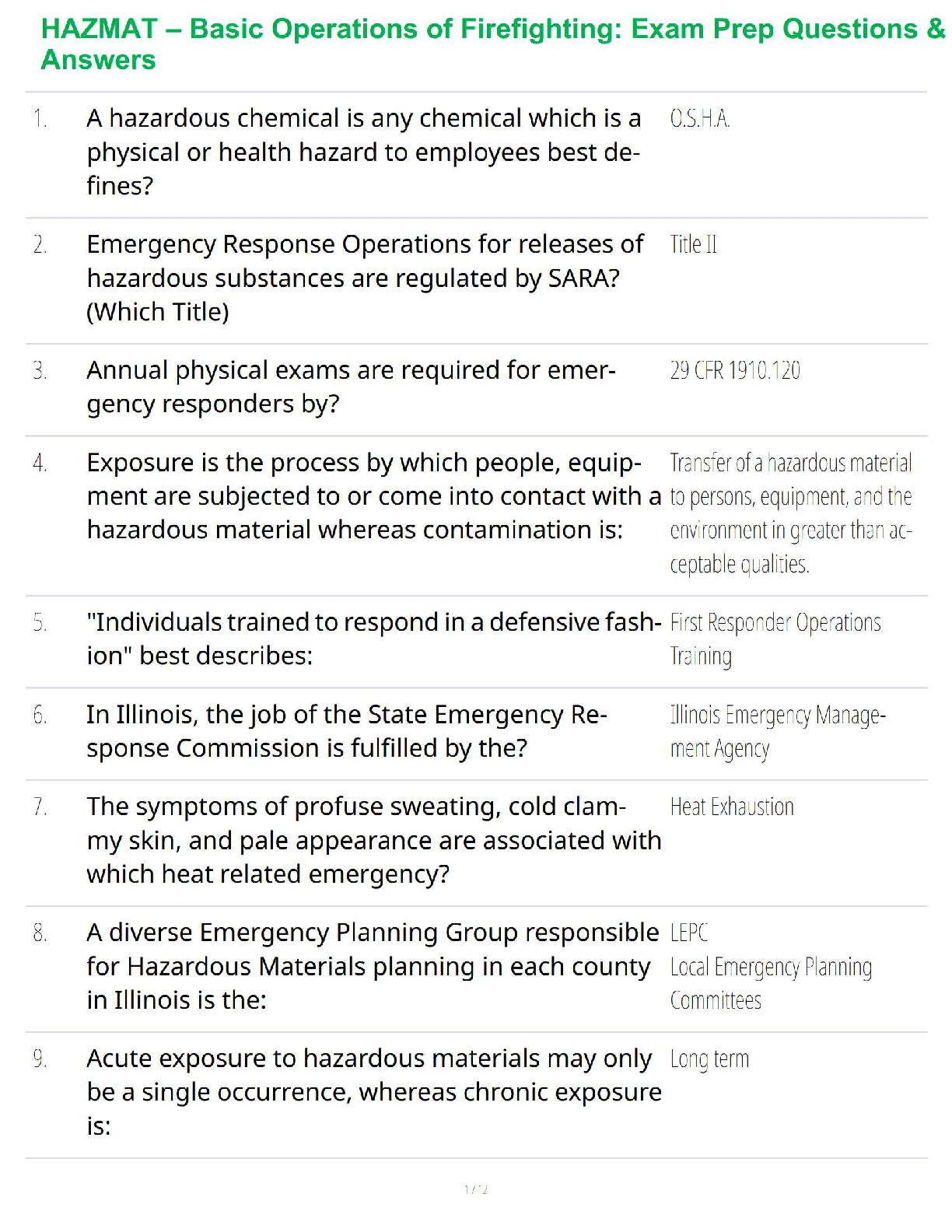 Firefighter 1 & 2 > QUESTIONS & ANSWERS > HAZMAT – Basic Operations of Firefighting: Exam Prep Questions & Answers (All)