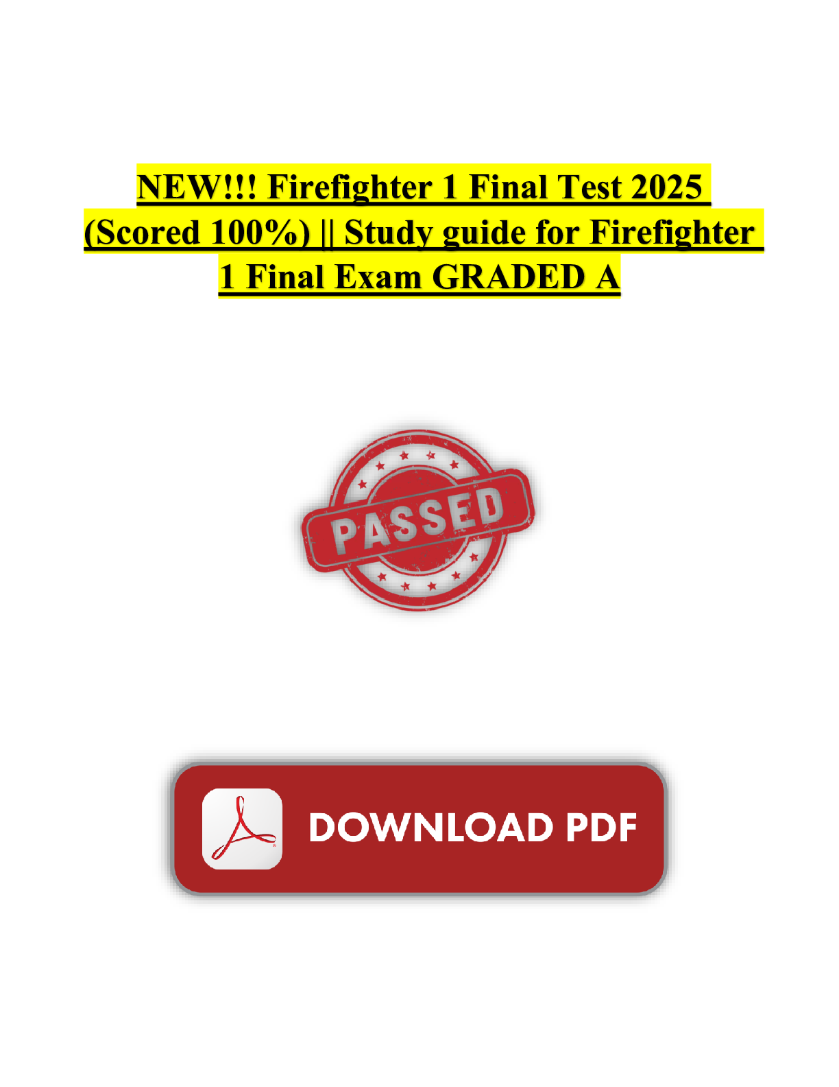 Firefighter 1 & 2 > EXAM > NEW!!! Firefighter 1 Final Test 2025 (Scored 100%) || Study guide for Firefighter 1 Final Exam GRADED A (All)