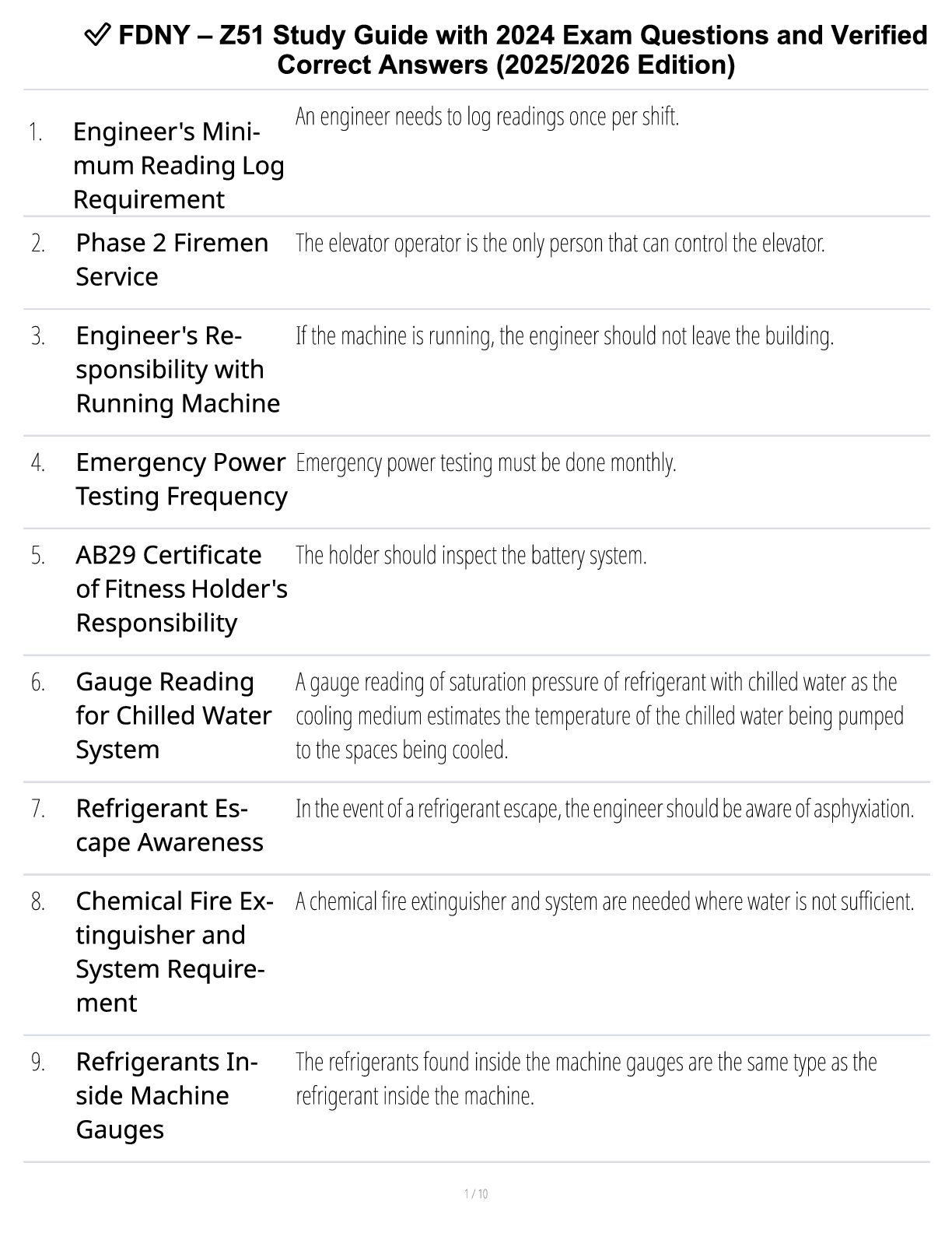 Firefighter 1 & 2 > STUDY GUIDE > ✅ FDNY – Z51 Study Guide with 2024 Exam Questions and Verified Correct Answers (2025/2026 Edition) (All)