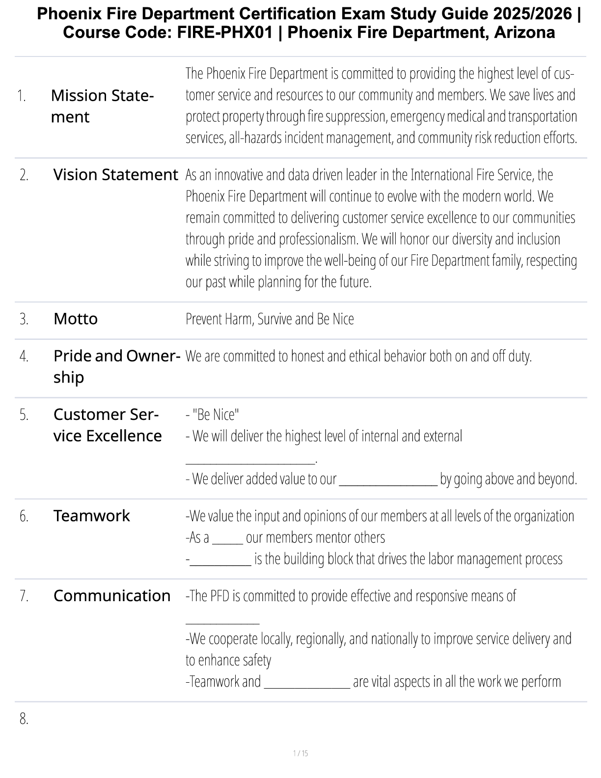 Firefighter 1 & 2 > STUDY GUIDE > Phoenix Fire Department Certification Exam Study Guide 2025/2026 | Course Code: FIRE-PHX01 | Phoenix Fire Department, Arizona (All)