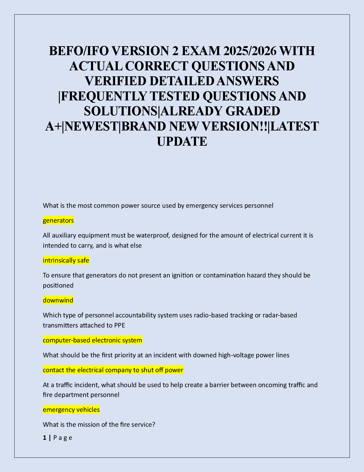 Firefighter 1 & 2 > EXAM > BEFO/IFO VERSION 2 EXAM 2025/2026 (All)