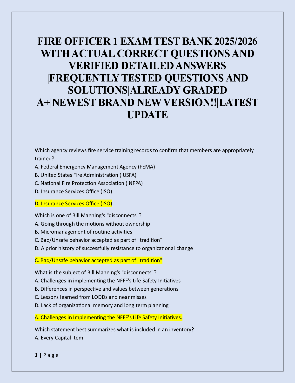 Firefighter 1 & 2 > EXAM > FIRE OFFICER 1 EXAM TEST BANK 2025/2026 (All)