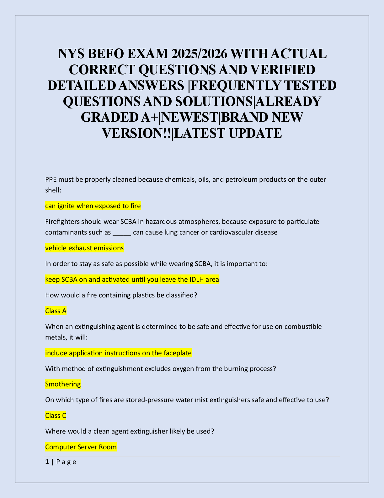 Firefighter 1 & 2 > EXAM > BEFO/IFO VERSION 1 EXAM 2025/2026 (All)
