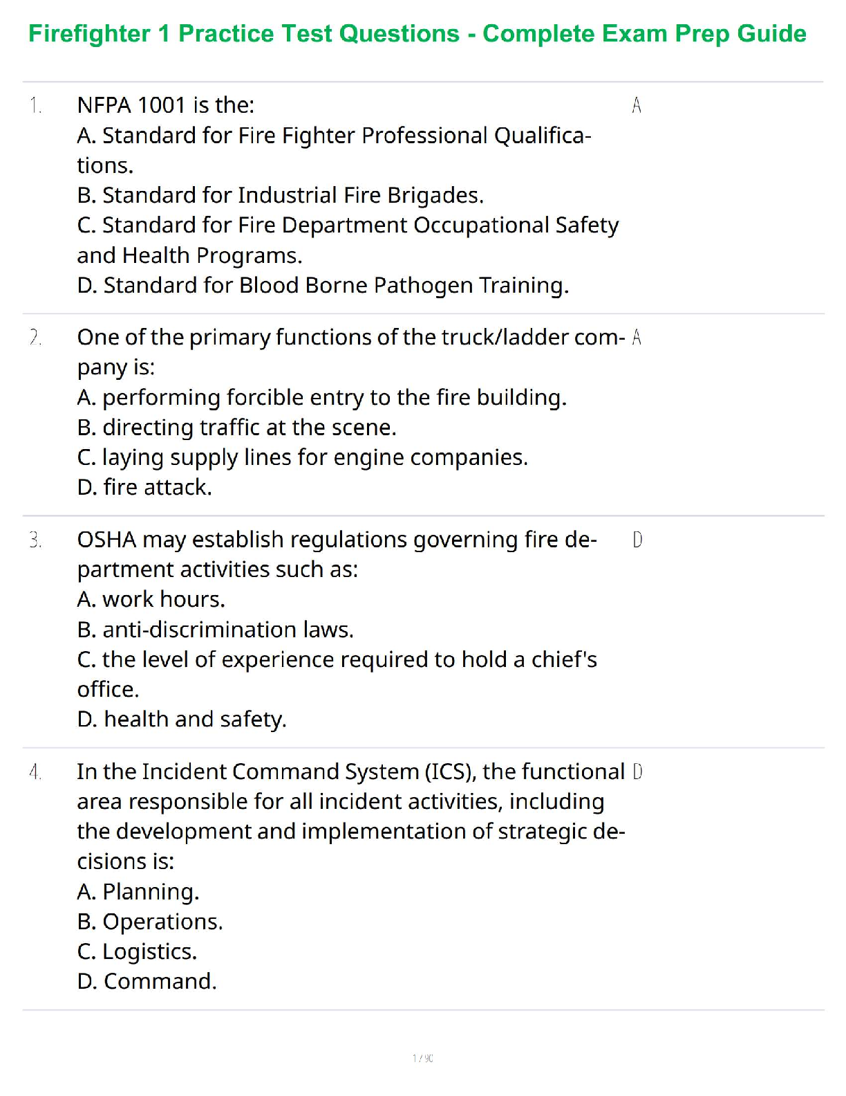 Firefighter 1 & 2 > STUDY GUIDE > Firefighter 1 Practice Test Questions - Complete Exam Prep Guide (All)