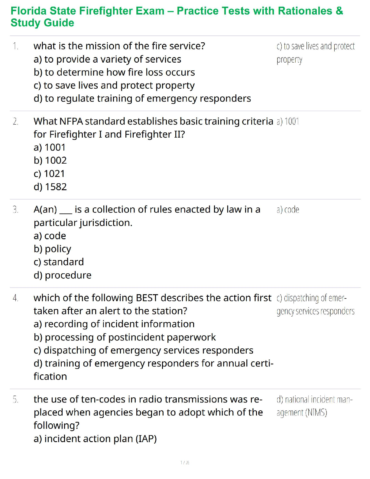 Firefighter 1 & 2 > STUDY GUIDE > Florida State Firefighter Exam – Practice Tests & Study Guide (All)