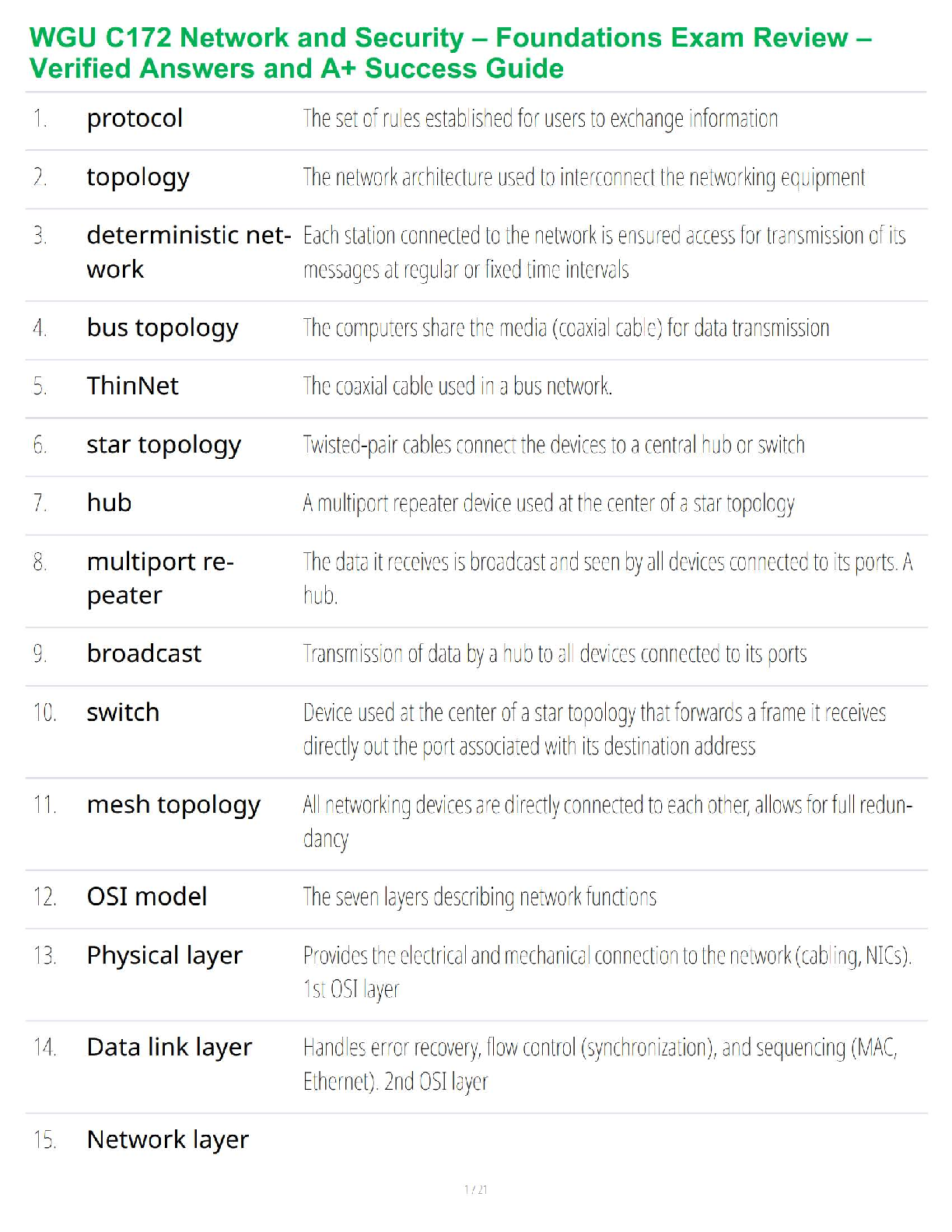 Computer Networking > STUDY GUIDE > WGU C172 Network and Security – Foundations Exam Review – Verified Answers and A+ Success Guide (All)
