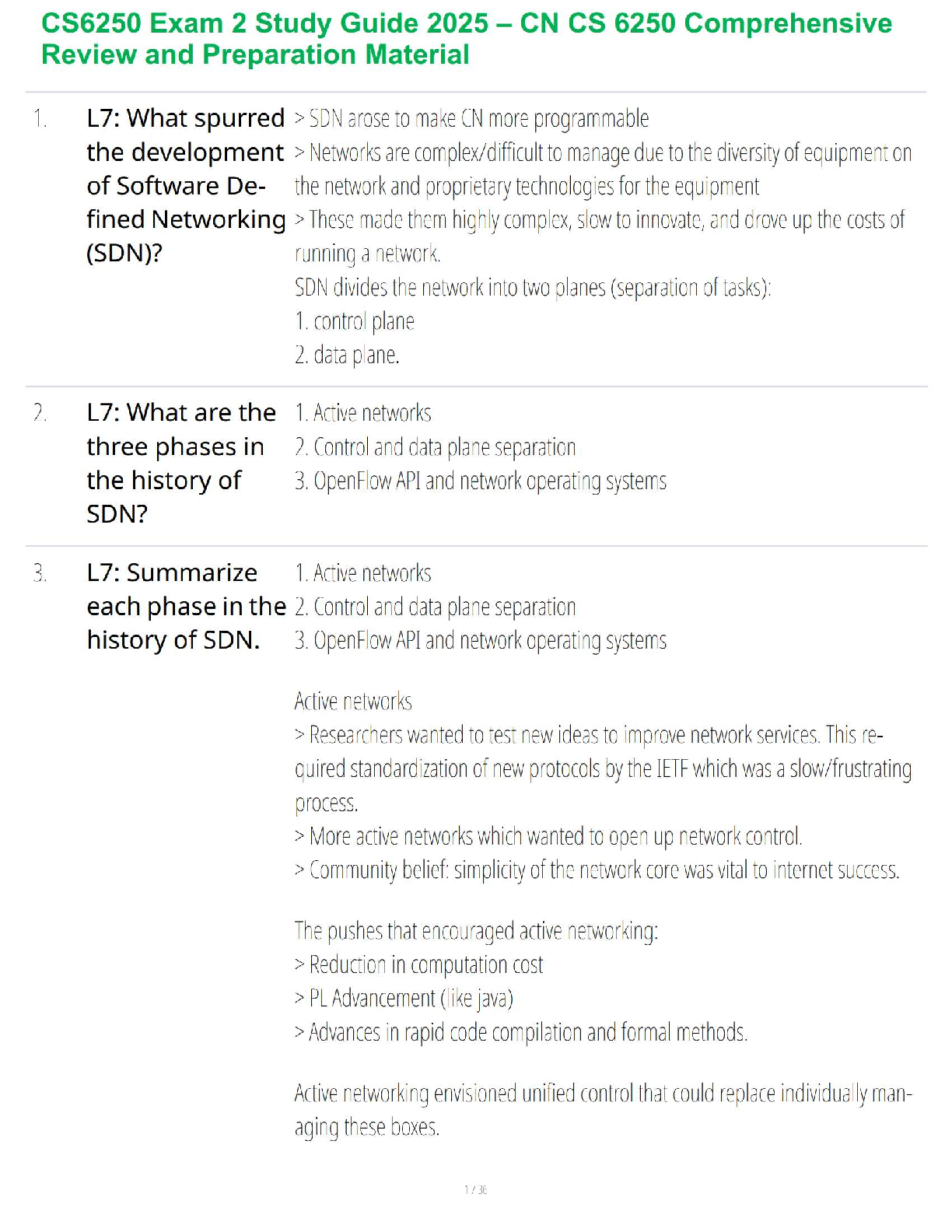 Computer Networking > STUDY GUIDE > CS6250 Exam 2 Study Guide 2025 – CN CS 6250 Comprehensive Review and Preparation Material (All)