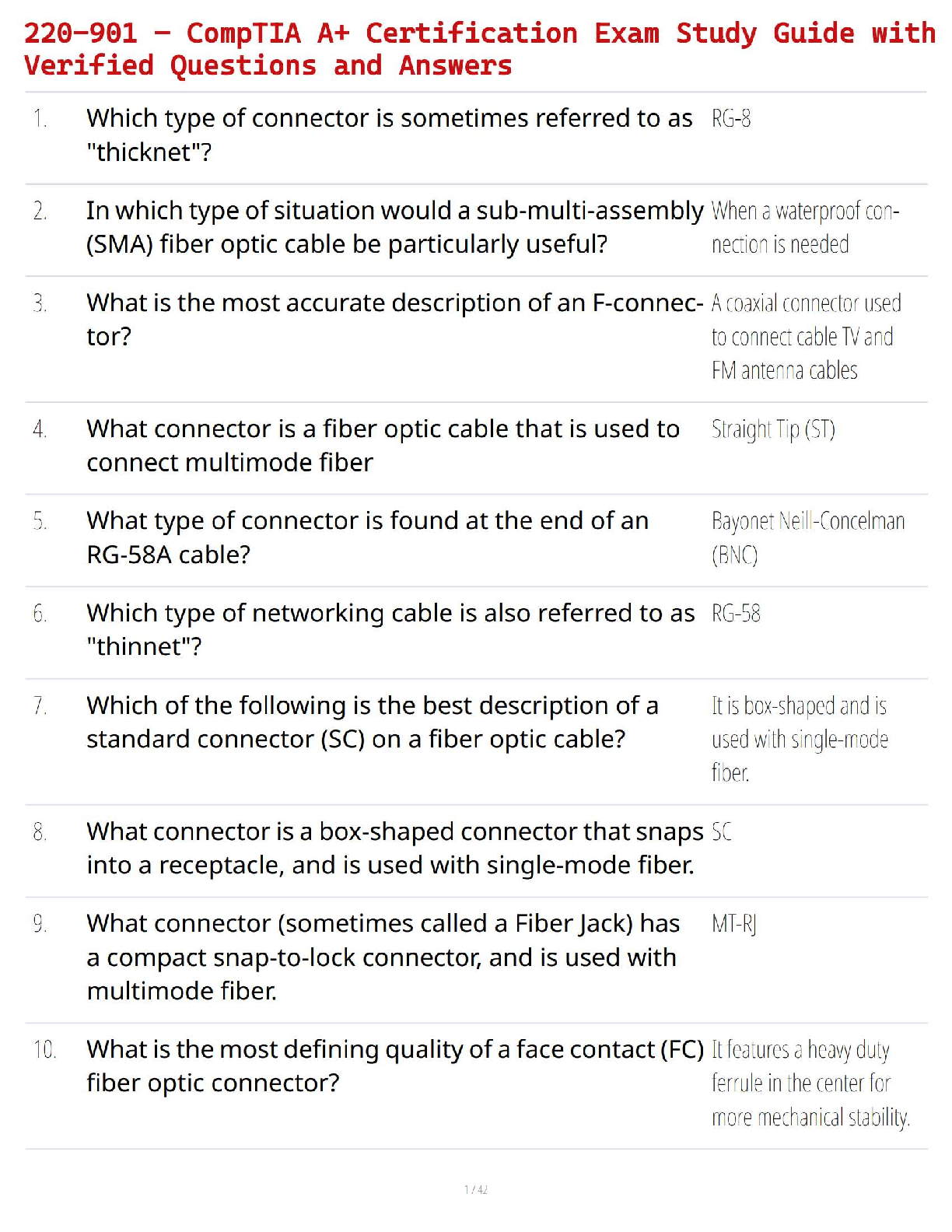 Computer Networking > STUDY GUIDE > 220-901 – CompTIA A+ Certification Exam Study Guide with Verified Questions and Answers (All)