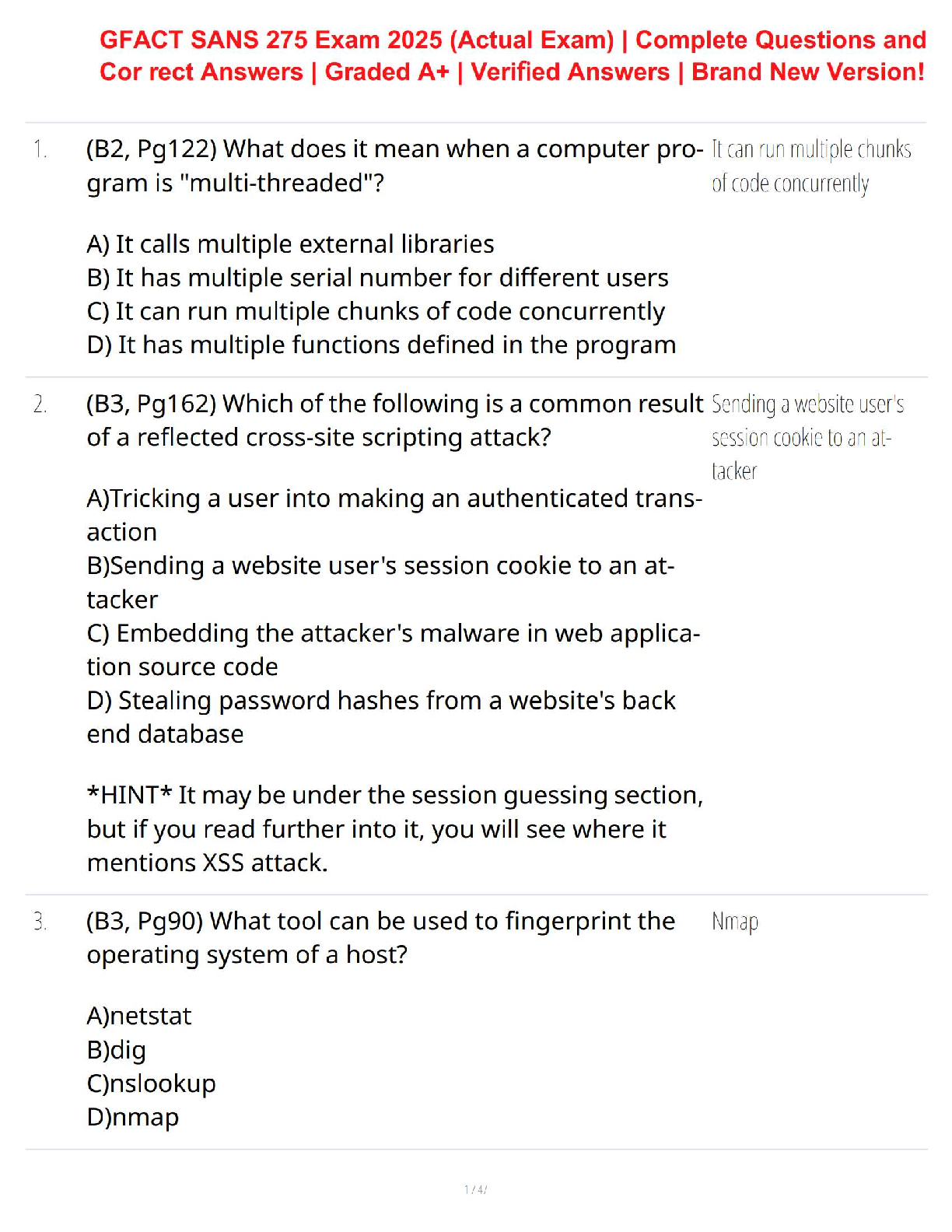 Computer Networking > QUESTIONS and ANSWERS > GFACT SANS 275 Exam 2025 – Complete Verified A+ Answers, Latest Version (All)
