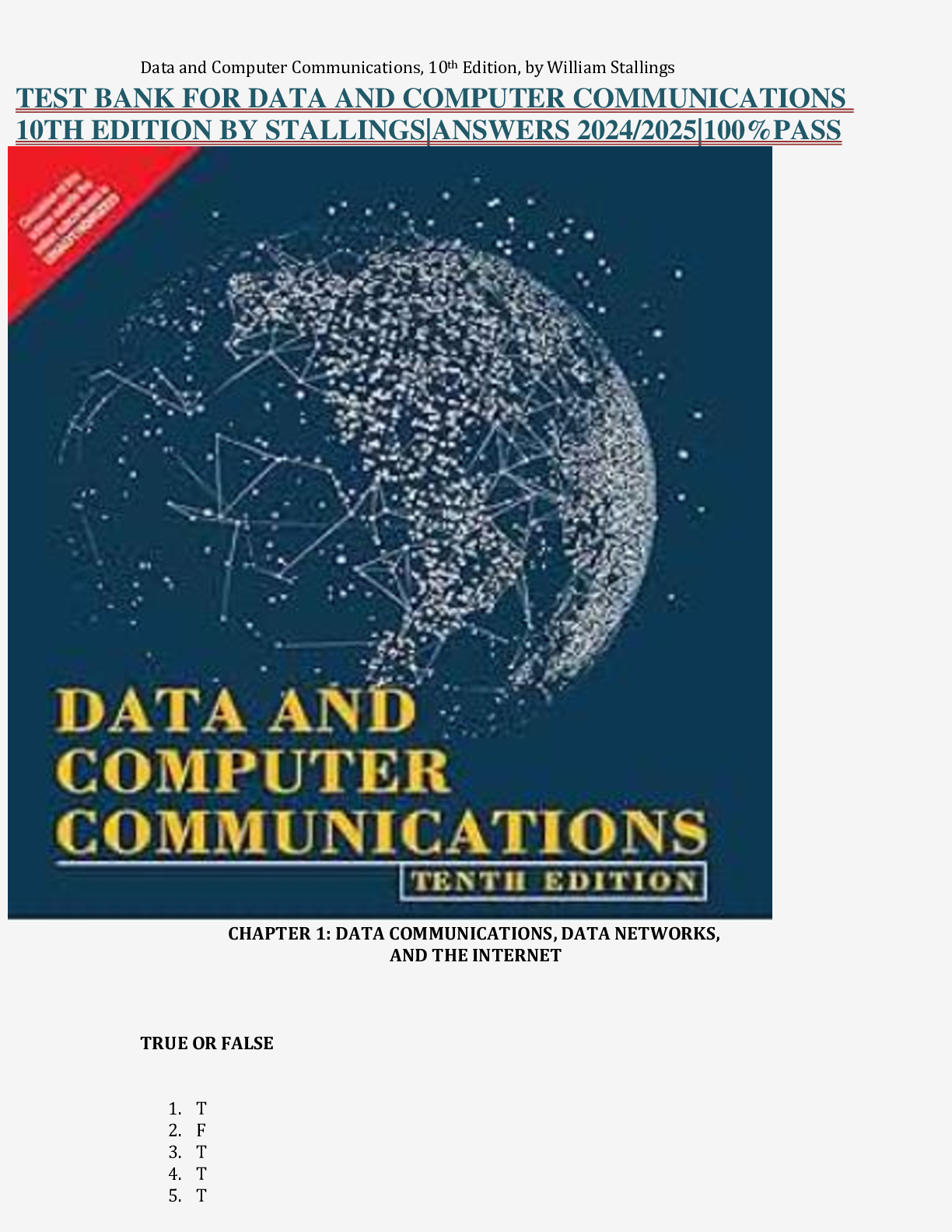 Computer Networking > EXAM > TEST BANK FOR DATA AND COMPUTER COMMUNICATIONS 10TH EDITION BY STALLINGS|ANSWERS 2024/2025|100%PASS (All)