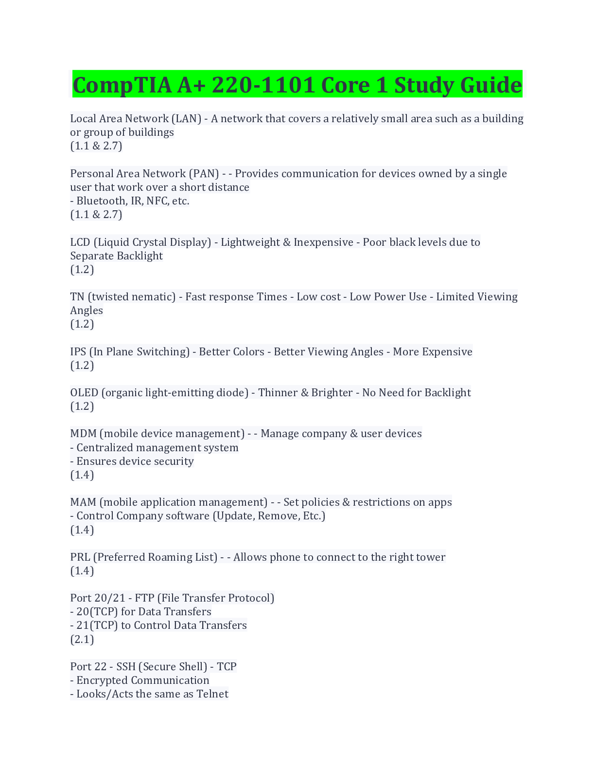 Computer Networking > EXAM > CompTIA A+ 220-1101 Core 1 Study Guide Latest Update (All)