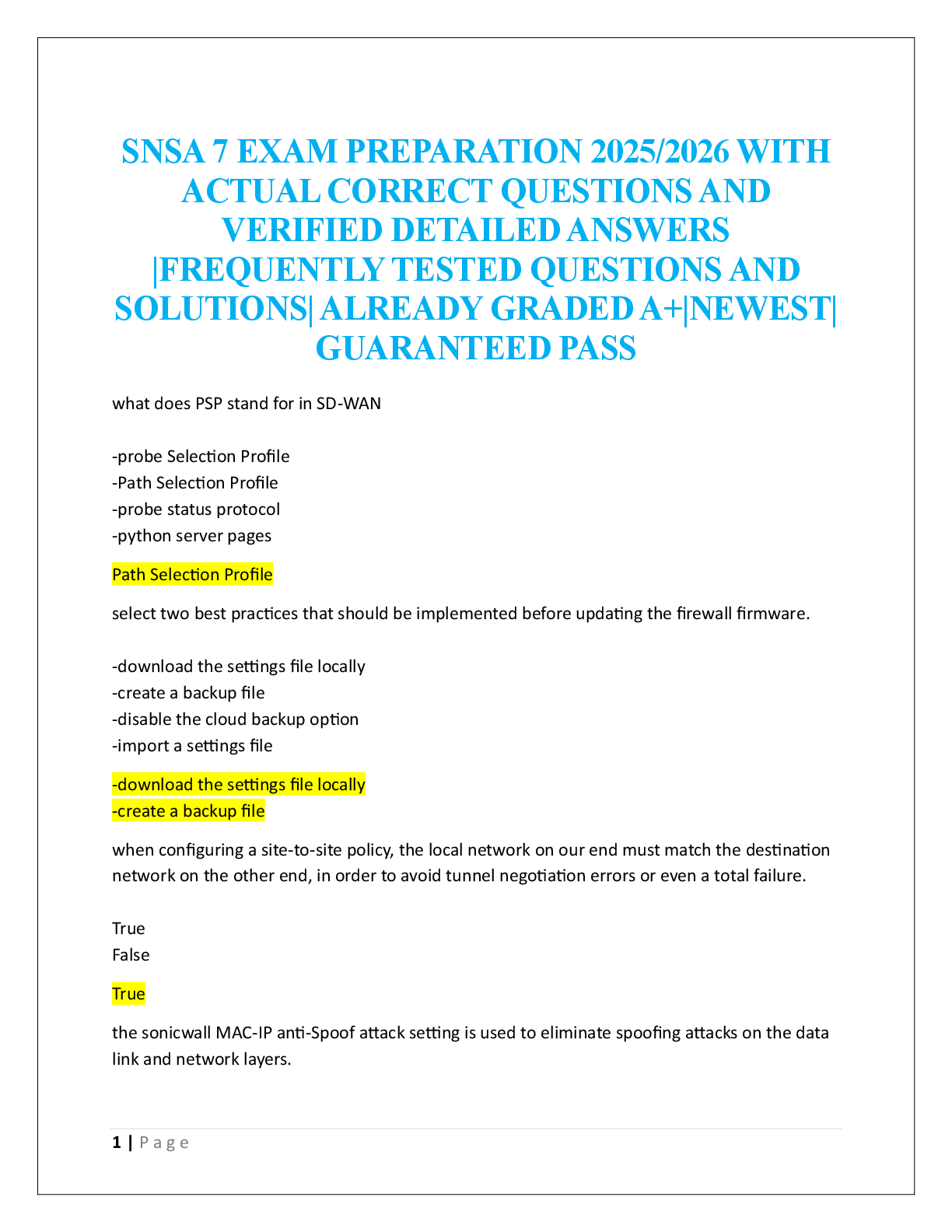 Computer Networking > EXAM > SNSA 7 EXAM PREPARATION 2025/2026 (All)