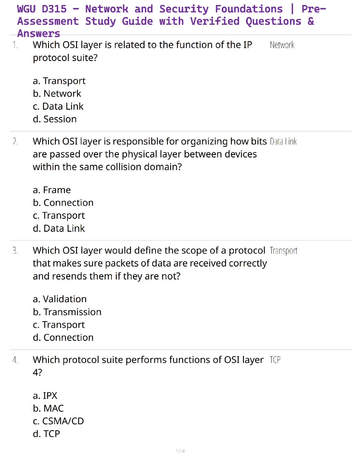 Computer Networking > STUDY GUIDE > WGU D315 – Network and Security Foundations | Pre-Assessment Study Guide with Verified Questions & Answers (All)