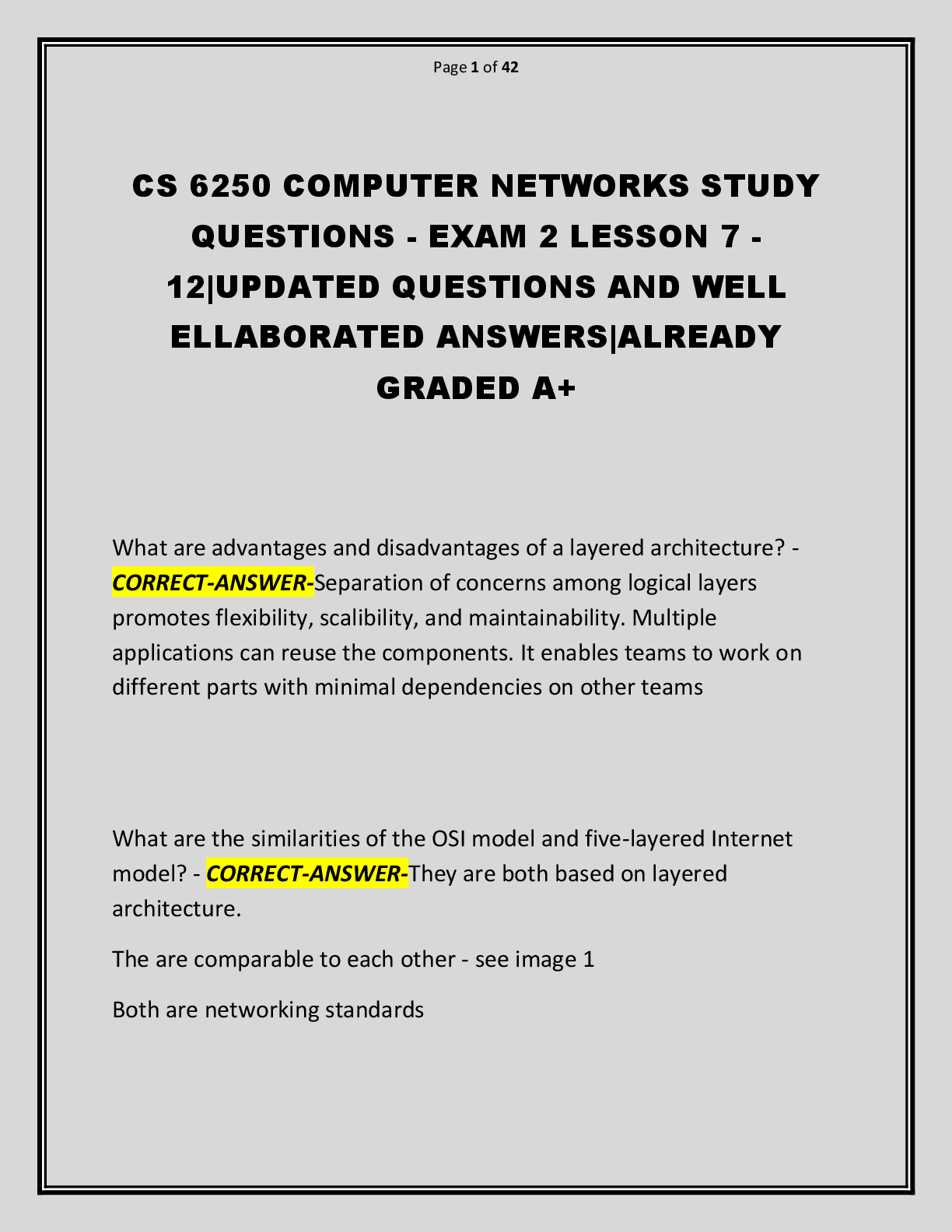 Computer Networking > EXAM > CS 6250 Computer Networks Exam 1 Questions and Answers Latest Guide Solved 100% Georgia Institute of Technology... (All)