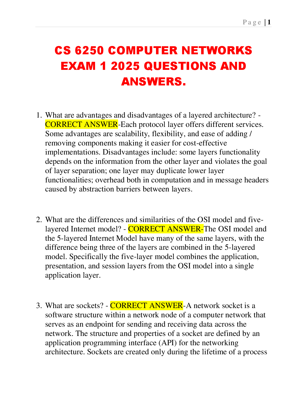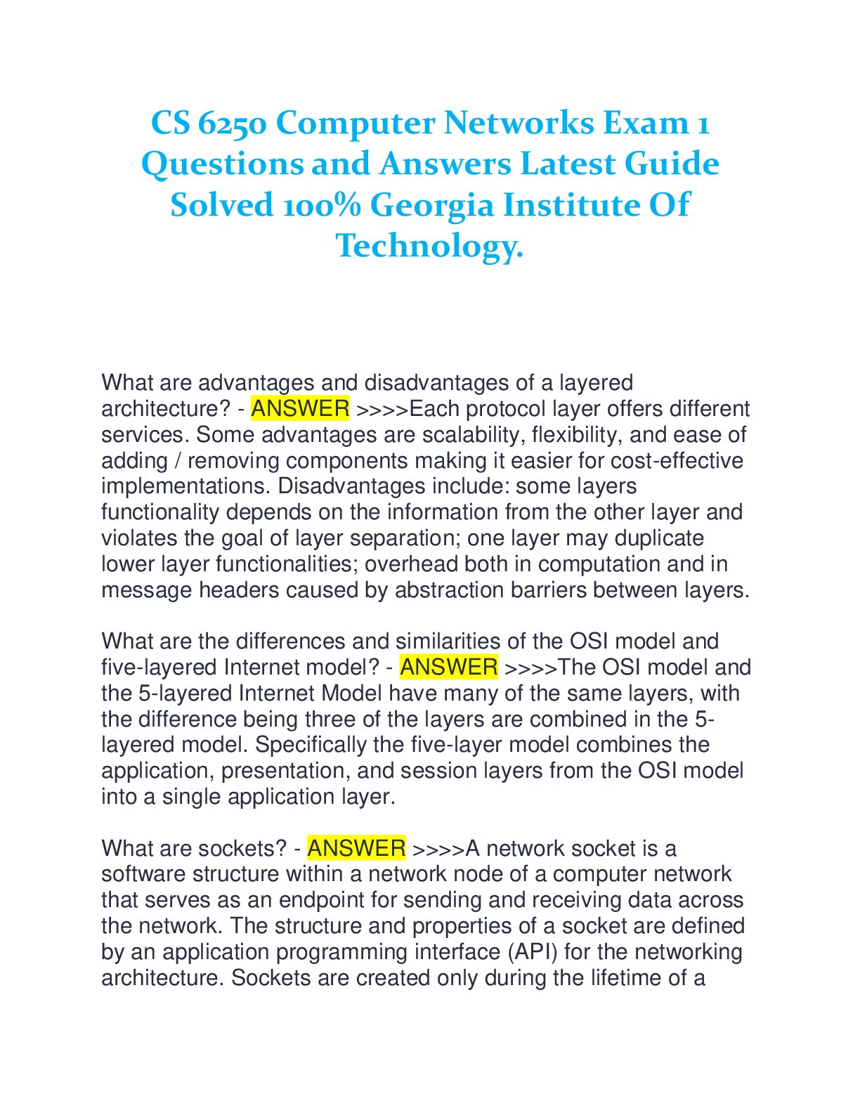 Computer Networking > EXAM > CS 6250 Computer Networks Exam 1 Questions and Answers Latest Guide Solved 100% Georgia Institute of Technology.. (All)