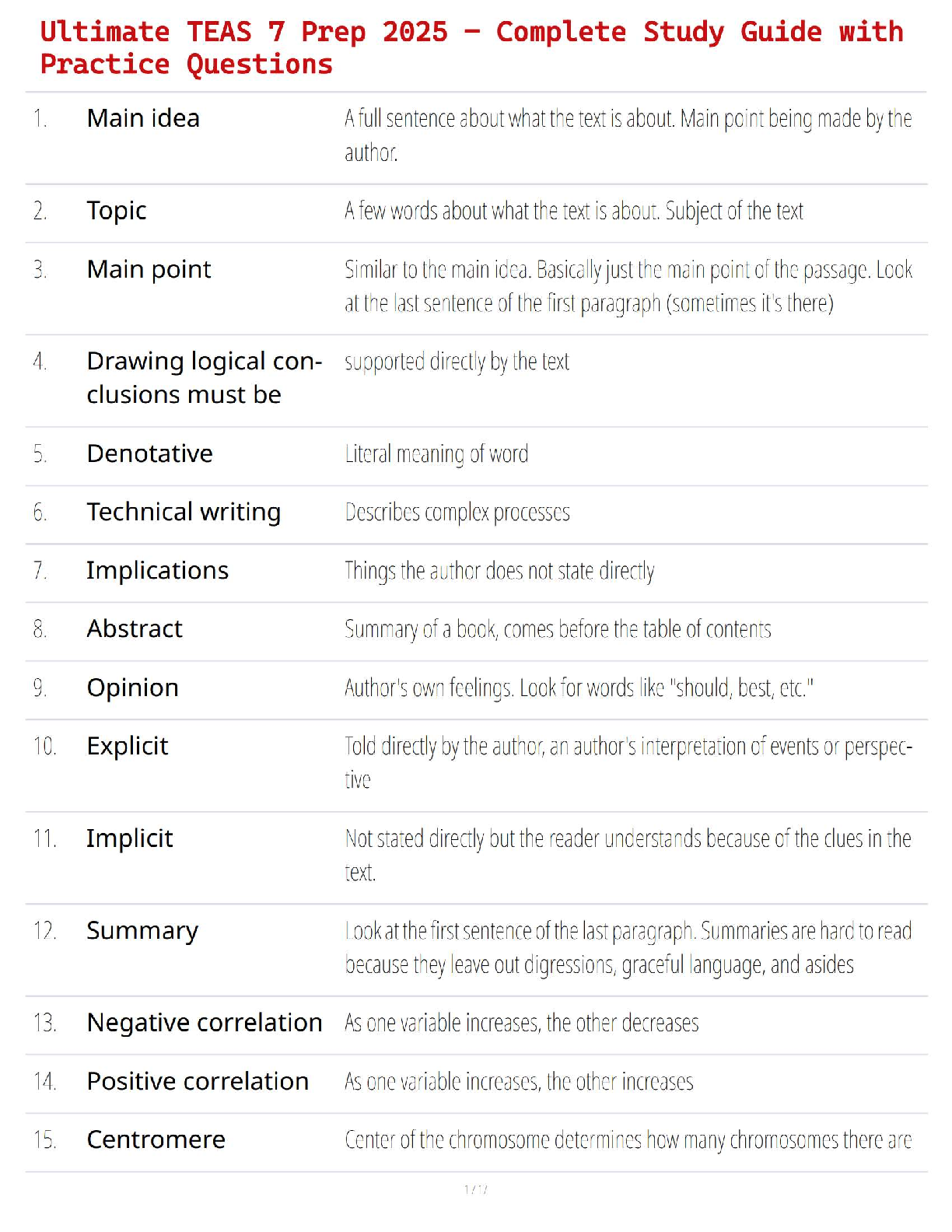 ATI TEAS 7 > QUESTIONS & ANSWERS > TEAS 2025 – Reading / Score 100% / New Version Practice Test, Study Guide & Exam Prep (All)
