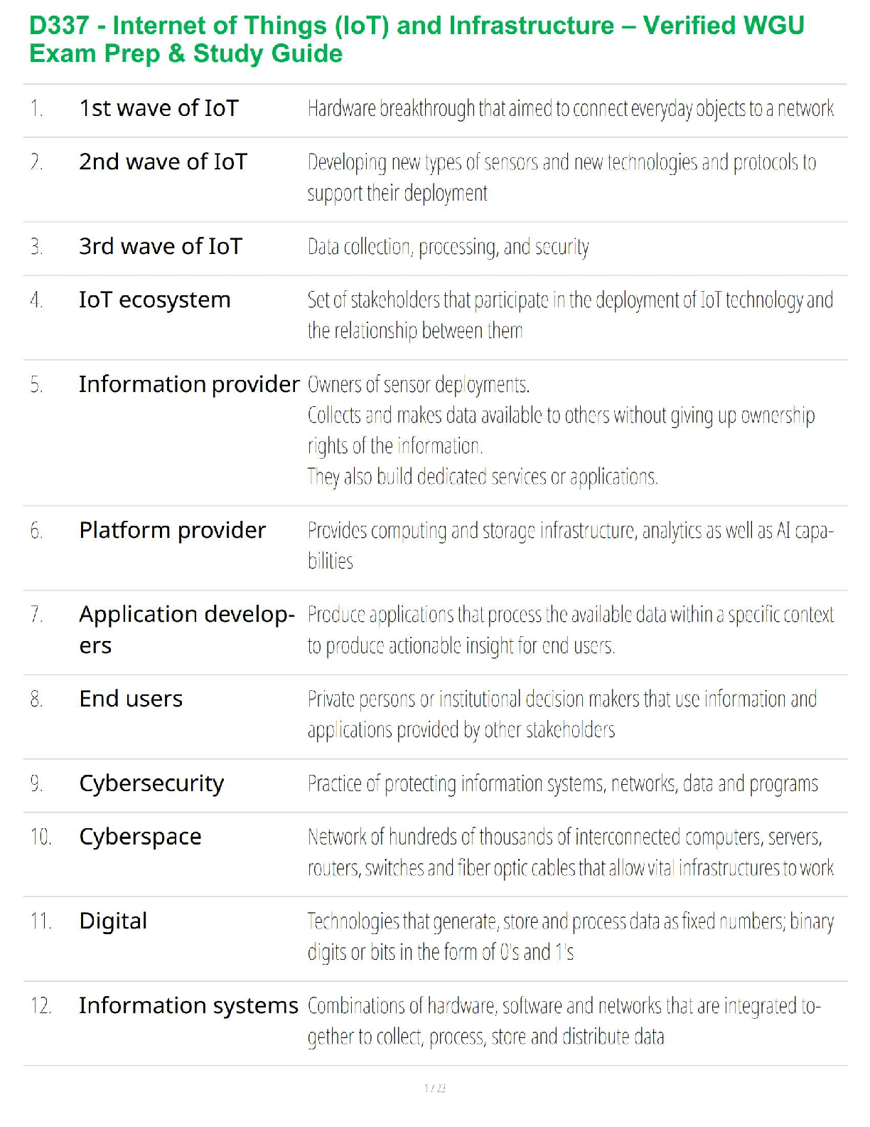 Data Networks > STUDY GUIDE > D337 - Internet of Things (IoT) and Infrastructure – Verified WGU Exam Prep & Study Guide (All)