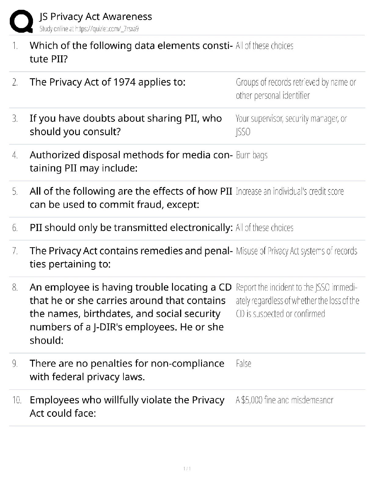 Data Networks > QUESTIONS & ANSWERS > JS Privacy Act Awareness / Joint Staff Training / 2025 Update / Score 100% (All)