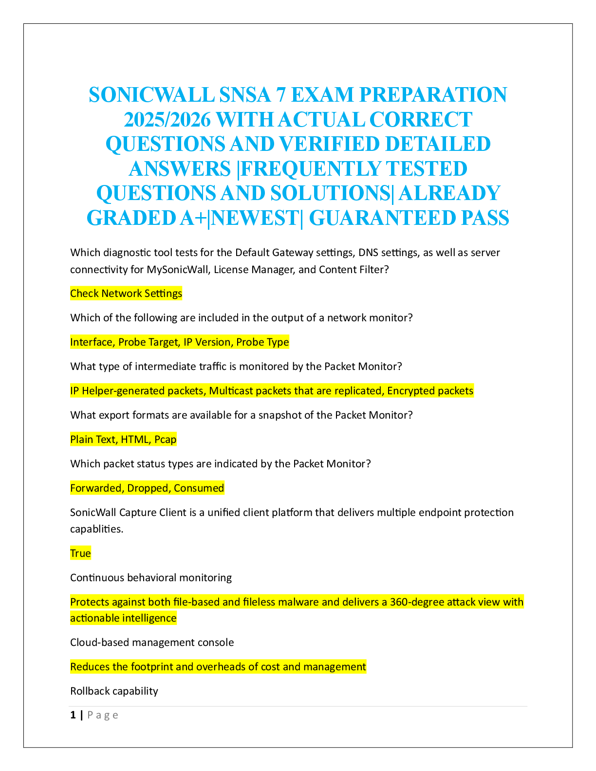 Data Networks > EXAM > SONICWALL SNSA 7 EXAM PREPARATION 2025/2026 (All)