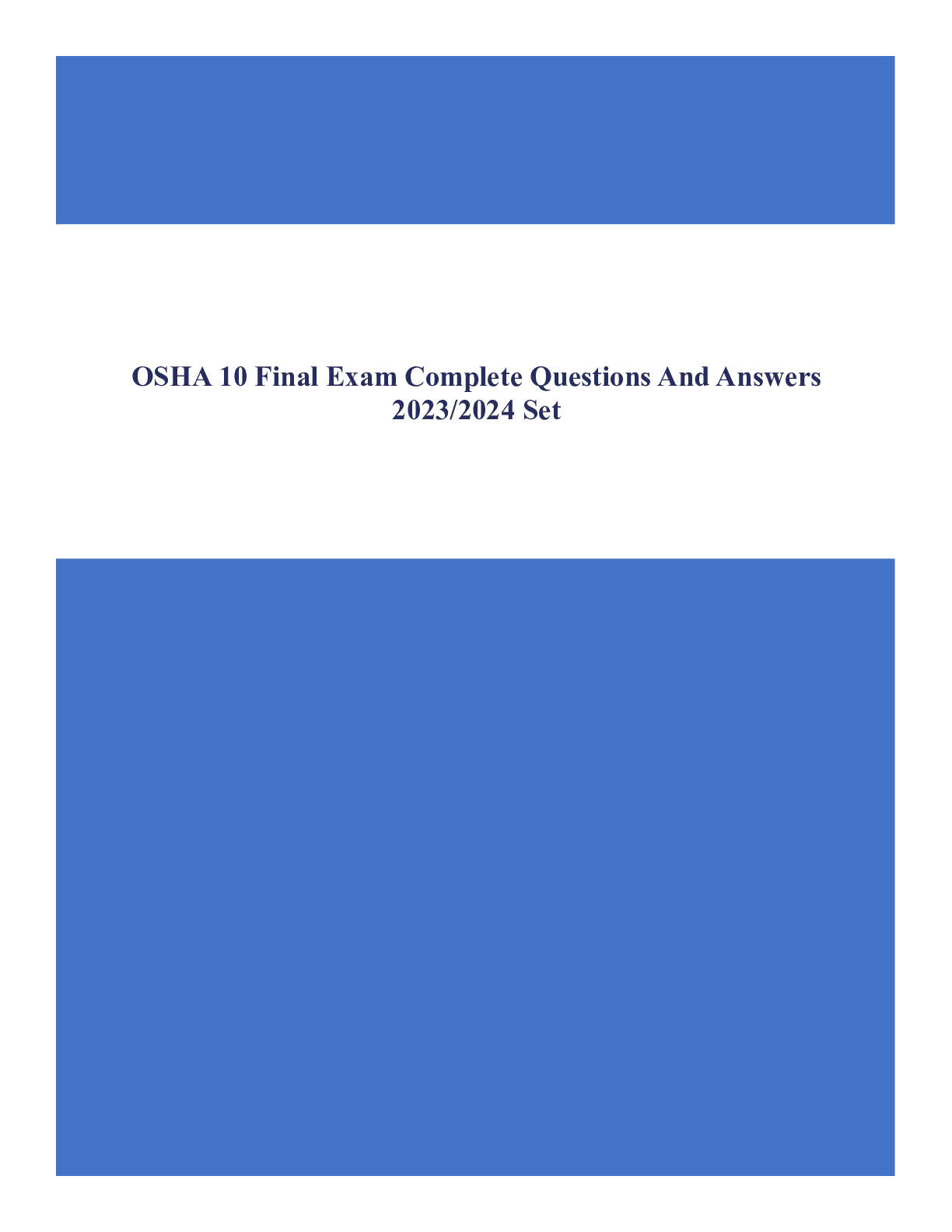OSHA > EXAMs > OSHA 10 Final Exam Complete Questions And Answers 2023/2024 Set (All)