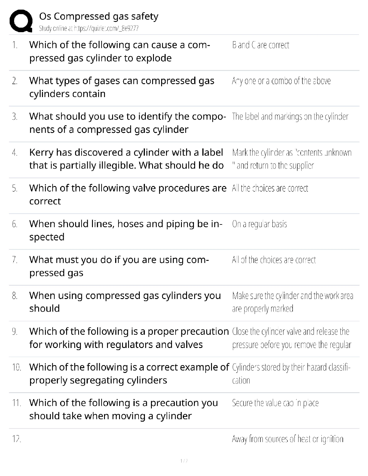 OSHA > QUESTIONS & ANSWERS > Compressed Gas Safety / OSHA & Workplace Certification / 2025 Update / Score 100% (All)