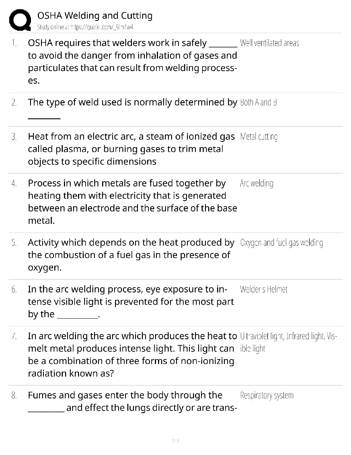 OSHA > QUESTIONS & ANSWERS > OSHA Welding and Cutting / Certification Exam Prep / 2025 Update / Score 100% (All)
