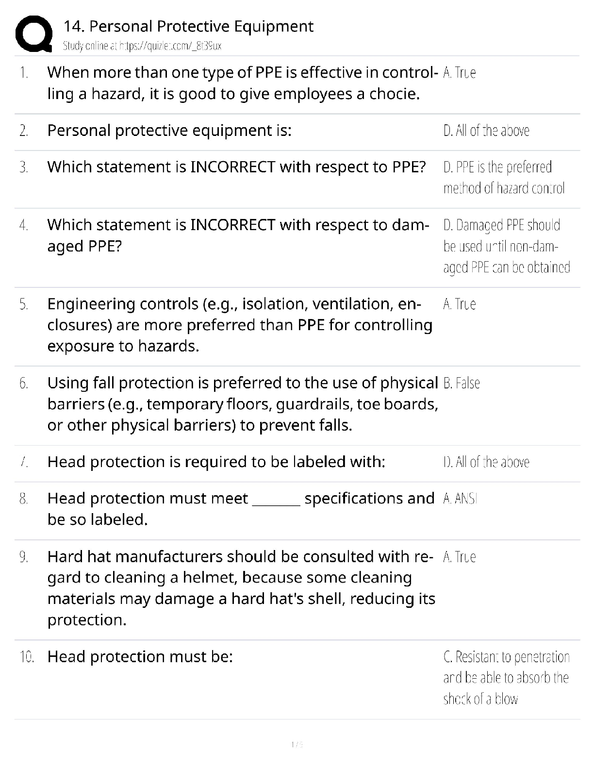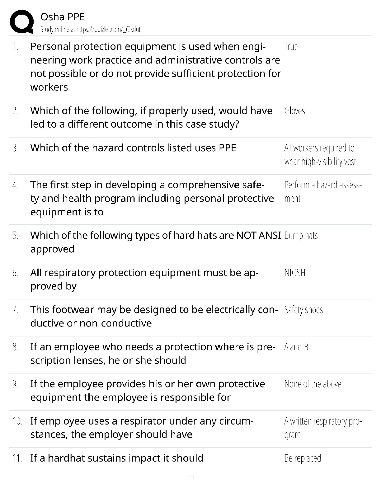 OSHA > QUESTIONS & ANSWERS > Personal Protective Equipment Test Bank / OSHA Safety Certification / 2025 Update / Score 100% (All)
