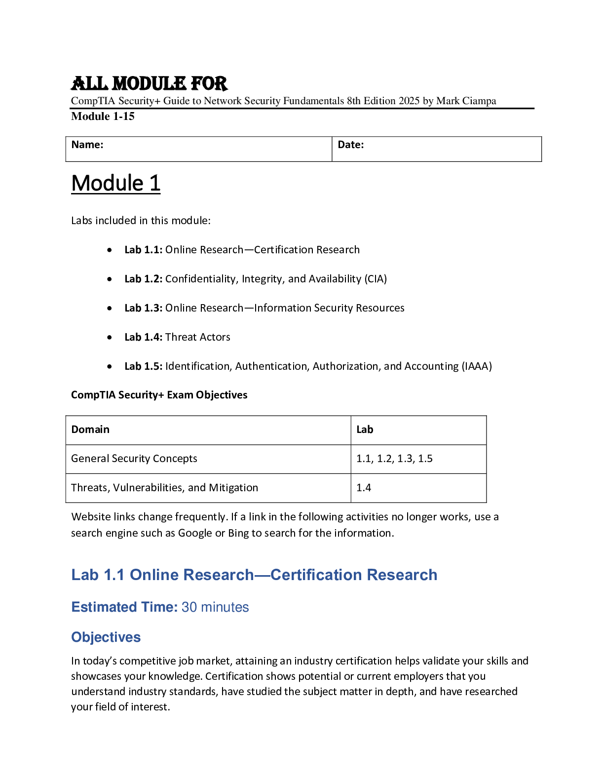 Physical Security > TEST BANKS > All Module For CompTIA Security+ Guide to Network Security Fundamentals 8th Edition 2025 by Mark Ciampa (All)