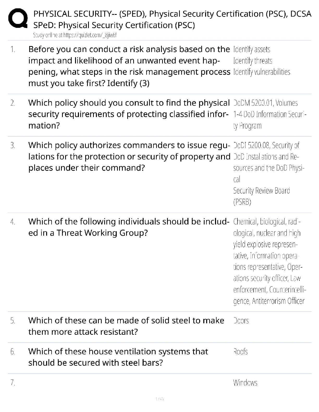 Physical Security > EXAM > PHYSICAL SECURITY-- (SPED), Physical Security Certification (PSC), DCSA SPeD: Physical Security Certification (PSC) Exam Questions & Answers (All)
