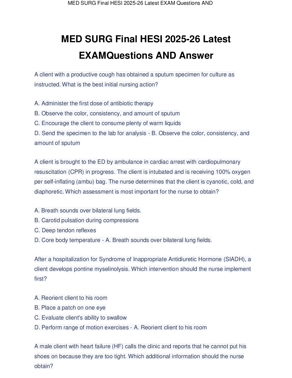 Med Surg II > TEST BANKS > Med-Surg II HESI Test Bank Latest 2025 -26 Already Passed A+ (All)