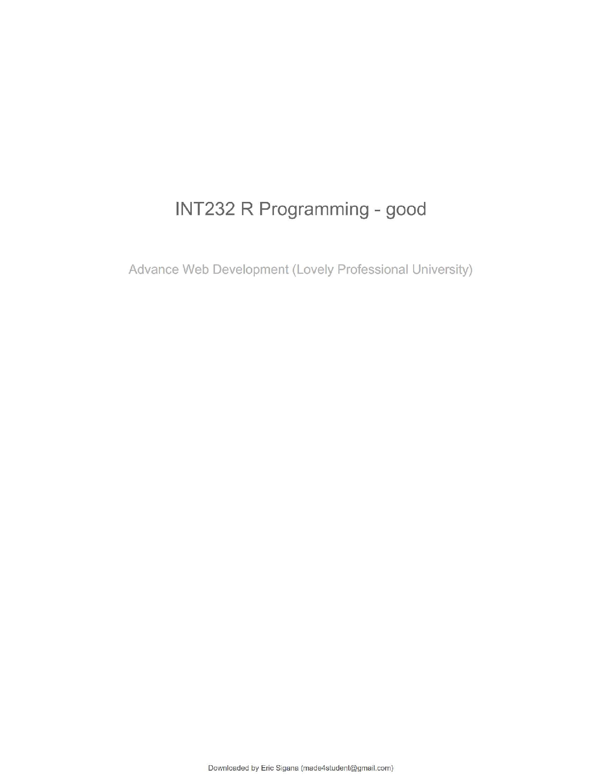 Programming > QUESTIONS and ANSWERS > INT232 – R Programming | Advanced Web Development (Lovely Professional University) | Complete Study Guide with Verified Questions and Correct Answers | 100% Accurate | Grade A (All)