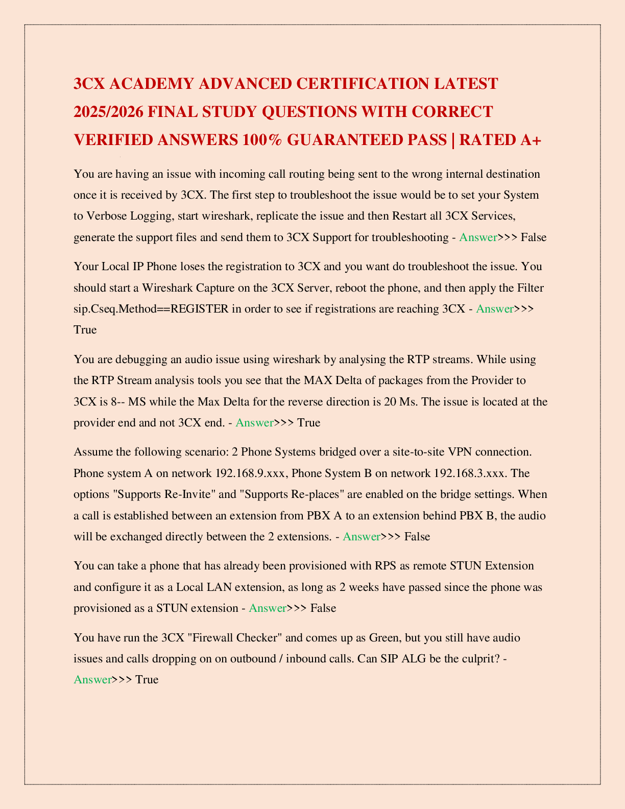 Programming > EXAM > 3CX ACADEMY ADVANCED CERTIFICATION LATEST 2025/2026 FINAL STUDY QUESTIONS WITH CORRECT VERIFIED ANSWERS 100% GUARANTEED PASS | RATED A+ (All)