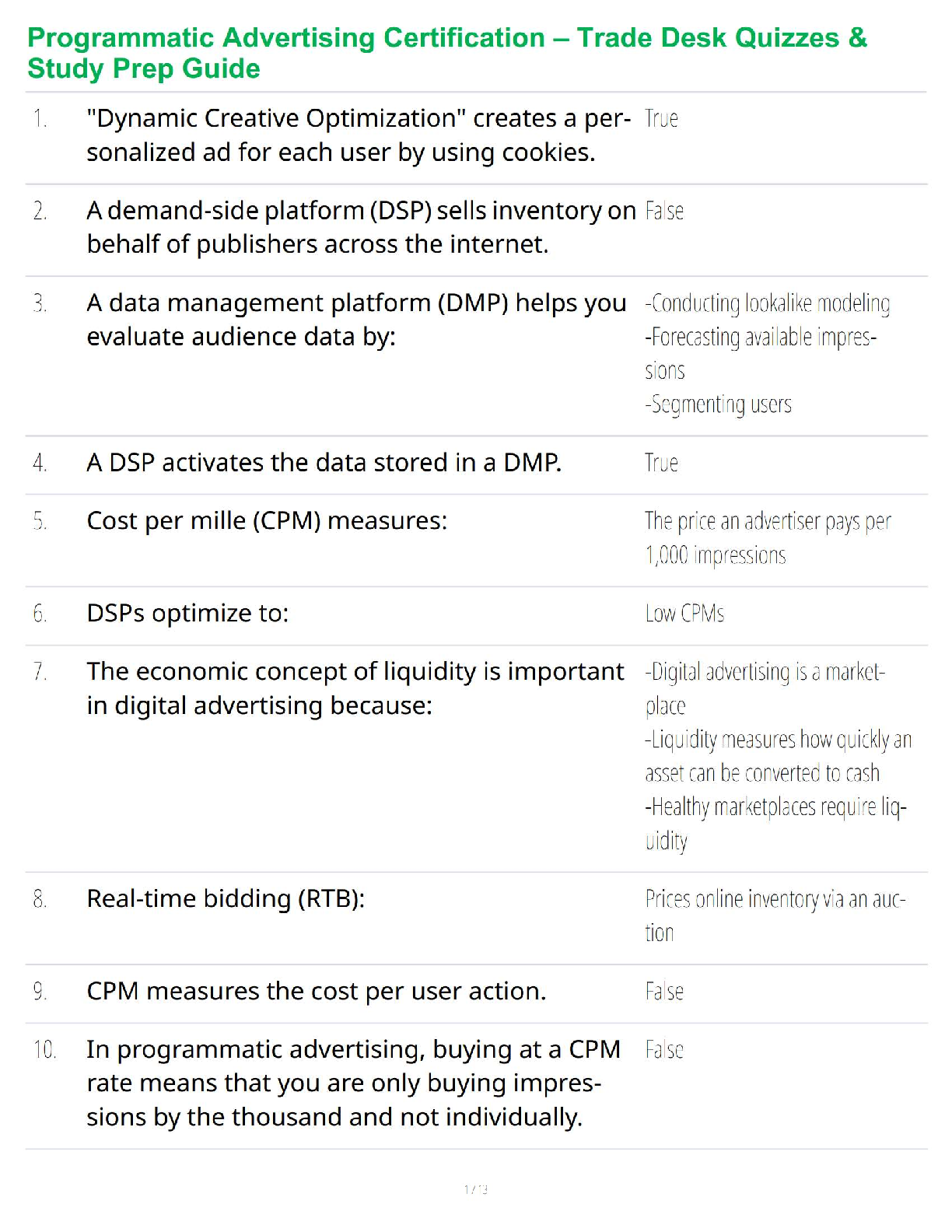 Programming > STUDY GUIDE > Programmatic Advertising Certification – Trade Desk Quizzes & Study Prep Guide (All)
