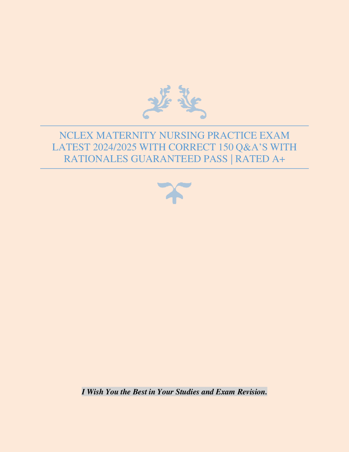 MATERNITY NURSING > EXAM > NCLEX MATERNITY NURSING PRACTICE EXAM LATEST 2024/2025 WITH CORRECT 150 Q&A’S WITH RATIONALES GUARANTEED PASS | RATED A+ (All)