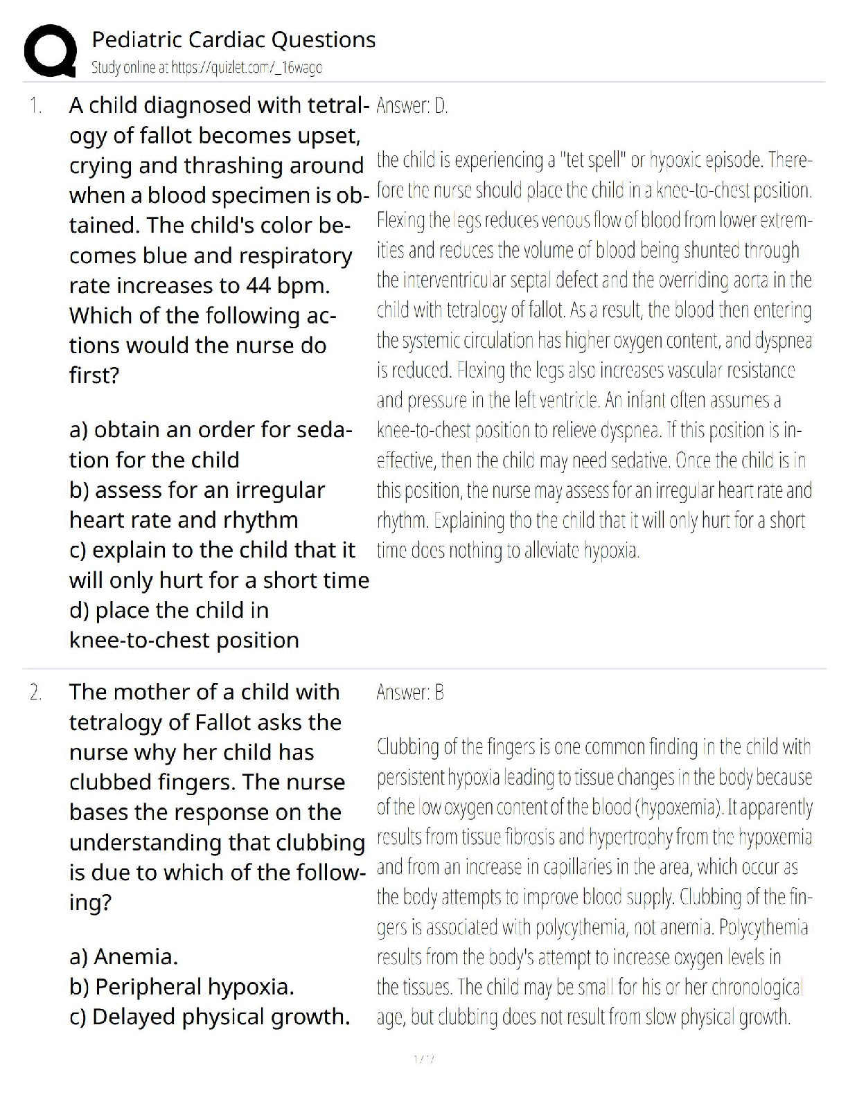 Hesi Pediatrics Peds > QUESTIONS & ANSWERS > Pediatric Cardiac Nursing Questions / Score 100% / 2025 NCLEX & ATI Update / Test Bank with Answers & Rationales (All)